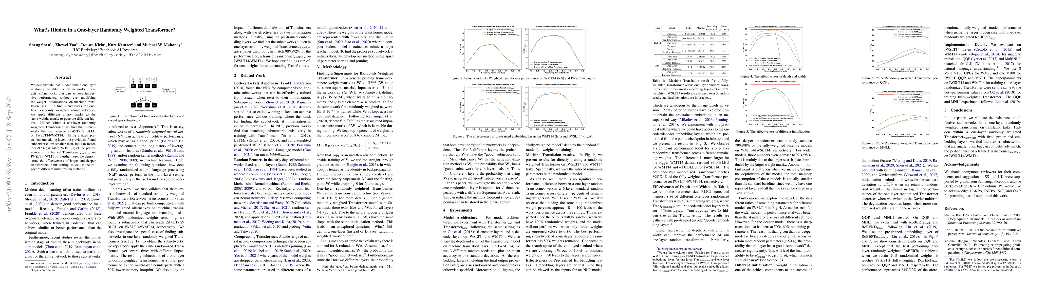 Researchers discovered subnetworks within one-layer randomly weighted Transformers that achieve impressive performance on machine translation tasks without modifying weights. These subnetworks can match up to 98% of the performance of a trained Transformer.