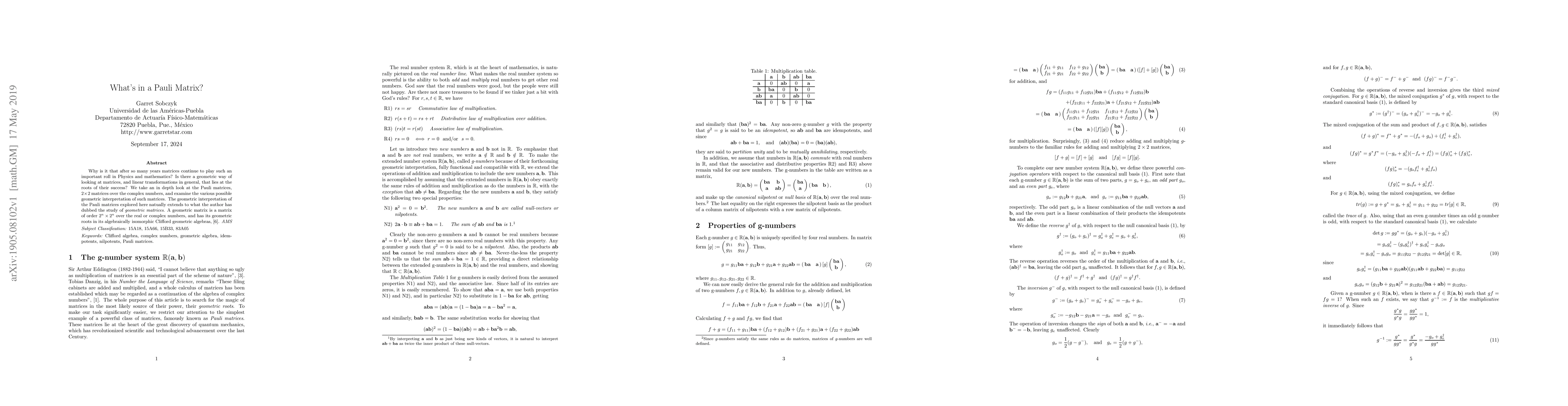 Why is it that after so many years matrices continue to play such an important roll in Physics and mathematics? Is there a geometric way of looking at matrices, and linear transformations in general, that lies at the roots of their success? We take an in depth look at the Pauli matrices, 2x2 matrices over the complex numbers, and examine the various possible geometric interpretations of such matrices. The geometric interpretation of the Pauli matrices explored here natualy extends to what the author has dubbed the study of "geometric matrices". A geometric matrix is a matrix of order 2^n x 2^n over the real or complex numbers, and has its geometric roots in its algebraically isomorphic Clifford geometric algebras.