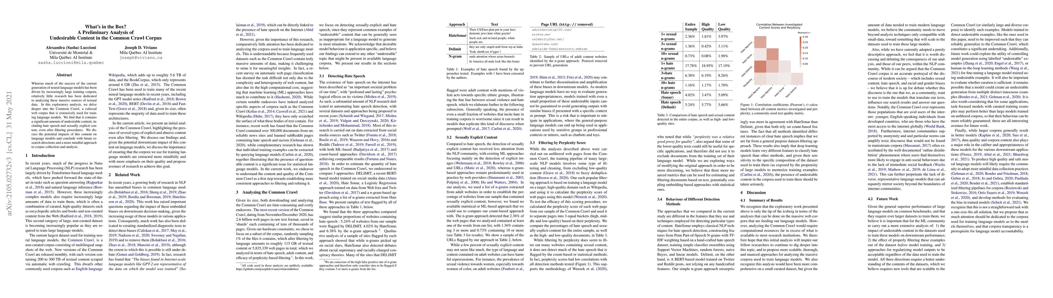 This study investigates the presence of undesirable content in the Common Crawl corpus, revealing significant amounts of hate speech and explicit material despite filtering. The findings highlight potential negative impacts on language models and suggest future research should focus on more conscientious corpus collection and analysis.