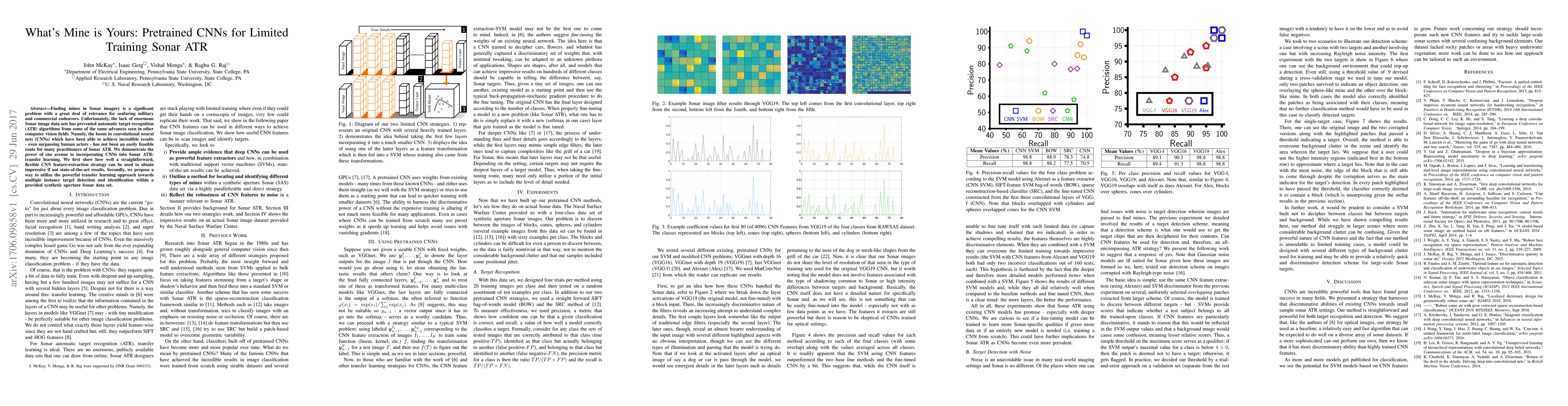 Finding mines in Sonar imagery is a significant problem with a great deal of relevance for seafaring military and commercial endeavors. Unfortunately, the lack of enormous Sonar image data sets has prevented automatic target recognition (ATR) algorithms from some of the same advances seen in other computer vision fields. Namely, the boom in convolutional neural nets (CNNs) which have been able to achieve incredible results - even surpassing human actors - has not been an easily feasible route for many practitioners of Sonar ATR. We demonstrate the power of one avenue to incorporating CNNs into Sonar ATR: transfer learning. We first show how well a straightforward, flexible CNN feature-extraction strategy can be used to obtain impressive if not state-of-the-art results. Secondly, we propose a way to utilize the powerful transfer learning approach towards multiple instance target detection and identification within a provided synthetic aperture Sonar data set.