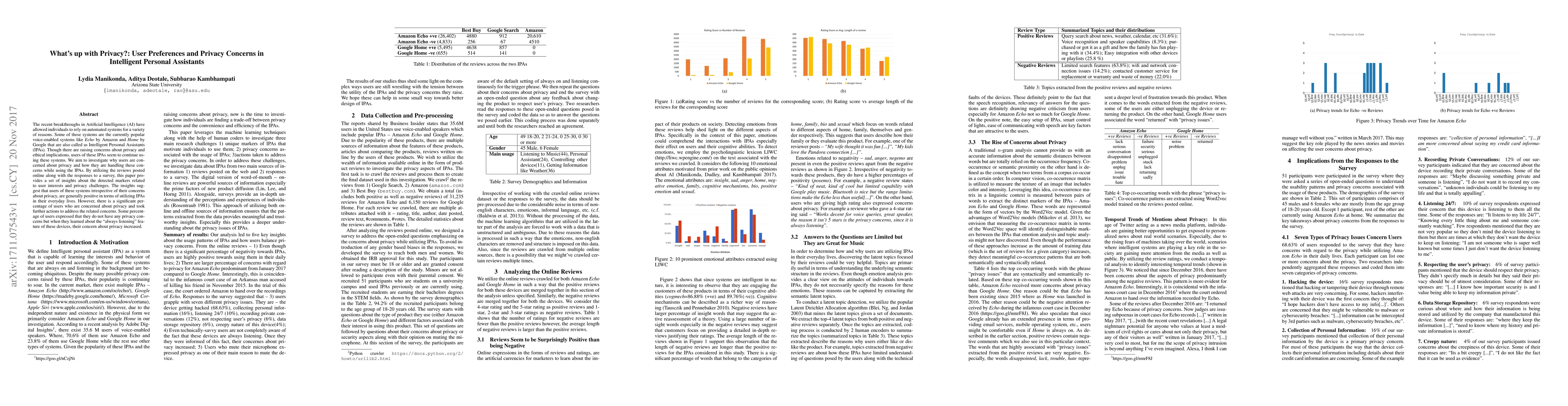 This paper explores user preferences and privacy concerns regarding Intelligent Personal Assistants (IPAs) like Amazon Echo and Google Home. Despite privacy worries, users generally remain positive about IPAs, though a notable portion actively addresses their privacy concerns, especially upon learning about the "always listening" feature.