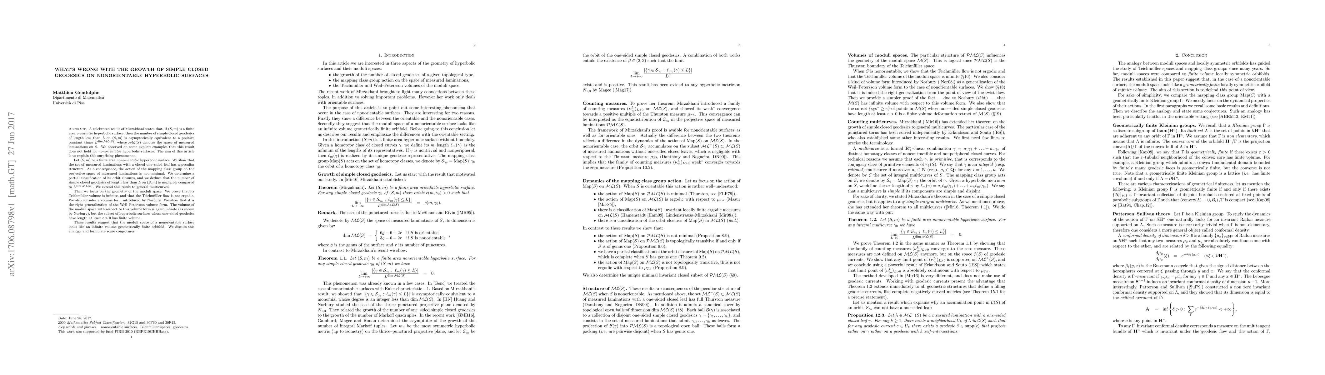 Research shows that simple closed geodesics on nonorientable hyperbolic surfaces have a limited number compared to those on orientable surfaces, contradicting a celebrated result.