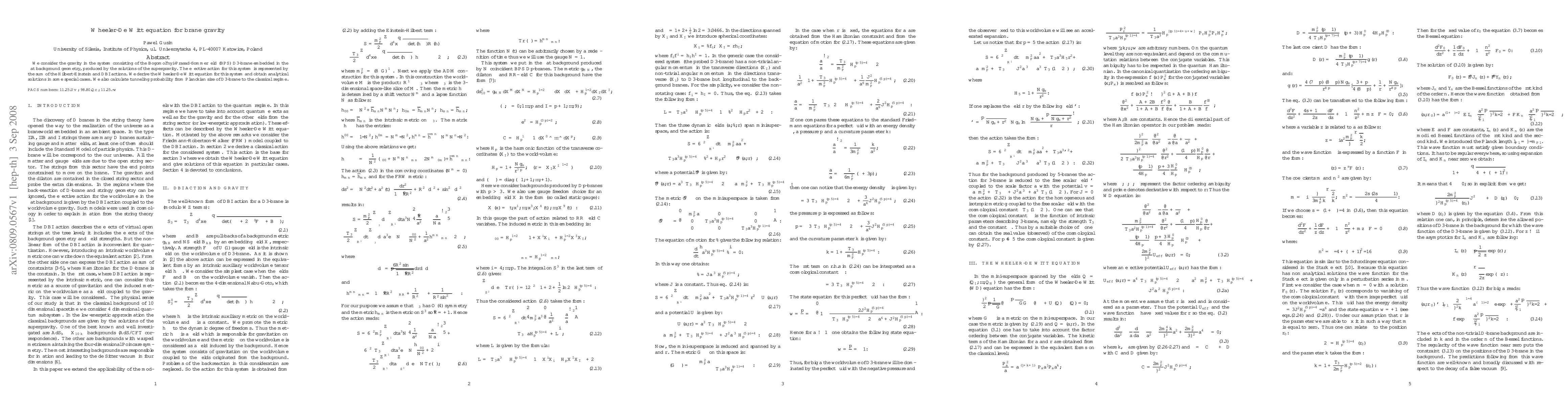 This paper derives the Wheeler-De Witt equation for gravity in a system with a Bogomol'nyi-Prasad-Sommerfield D3-brane in a flat background, combining the Hilbert-Einstein and DBI actions, and provides analytical solutions and tunneling probability calculations for transitions from Planckian to classical regimes.