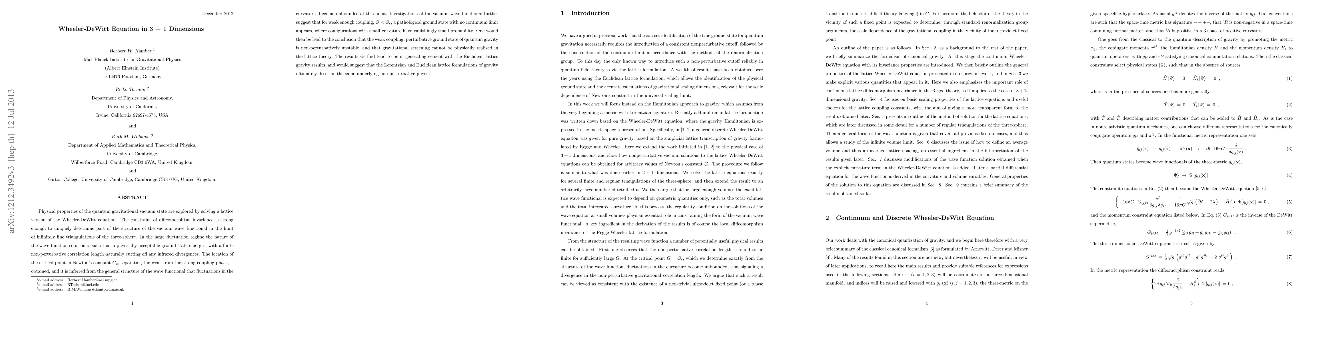 Researchers solved a lattice version of the Wheeler-DeWitt equation to study quantum gravity in 3+1 dimensions, finding that weak coupling leads to an unstable, non-perturbatively unstable ground state with no continuum limit.