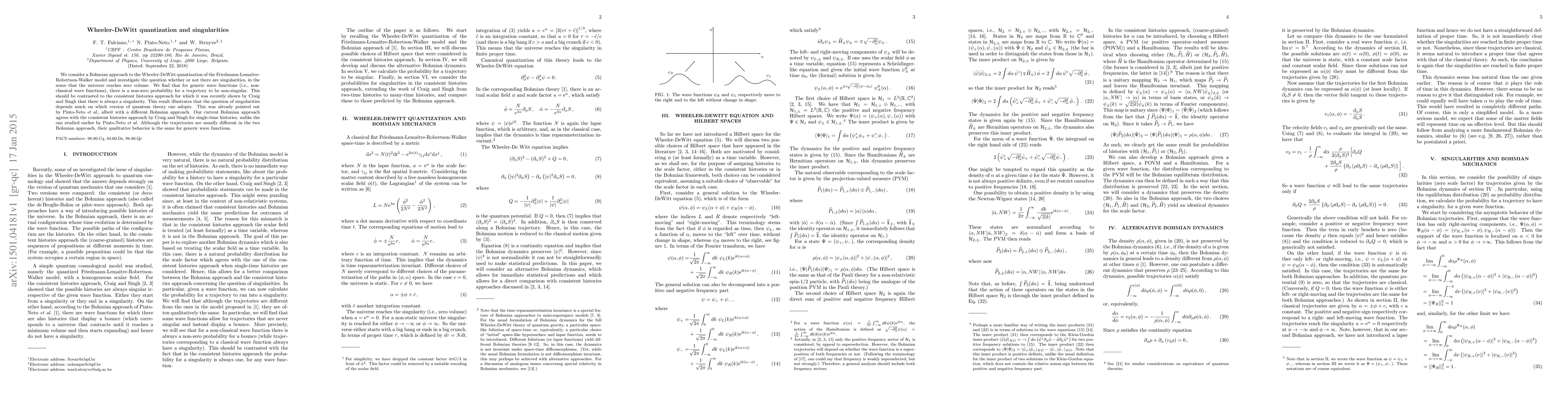 We consider a Bohmian approach to the Wheeler-DeWitt quantization of the Friedmann-Lemaitre-Robertson-Walker model and investigate the question whether or not there are singularities, in the sense that the universe reaches zero volume. We find that for generic wave functions (i.e., non-classical wave functions), there is a non-zero probability for a trajectory to be non-singular. This should be contrasted to the consistent histories approach for which it was recently shown by Craig and Singh that there is always a singularity. This result illustrates that the question of singularities depends much on which version of quantum theory one adopts. This was already pointed out by Pinto-Neto et al., albeit with a different Bohmian approach. Our current Bohmian approach agrees with the consistent histories approach by Craig and Singh for single-time histories, unlike the one studied earlier by Pinto-Neto et al. Although the trajectories are usually different in the two Bohmian approach, their qualitative behavior is the same for generic wave functions.