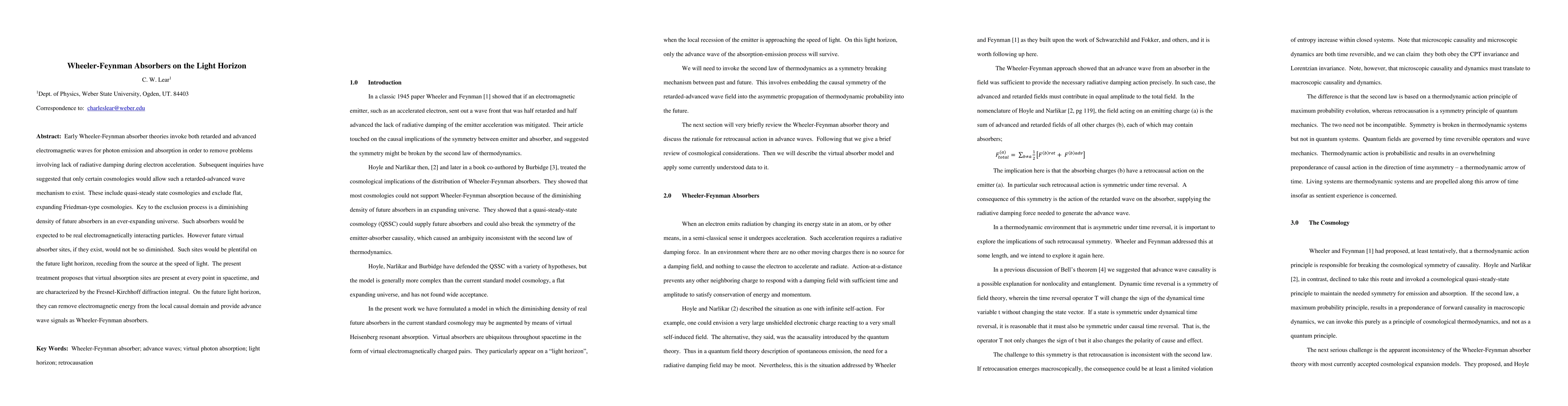 This paper explores the Wheeler-Feynman absorber theory, proposing that virtual absorbers on the future light horizon can provide advanced wave signals and remove electromagnetic energy, contrasting with the limitations of retarded-advanced wave mechanisms in expanding universes. It suggests that these virtual absorbers exist everywhere in spacetime and are crucial for maintaining radiative damping.