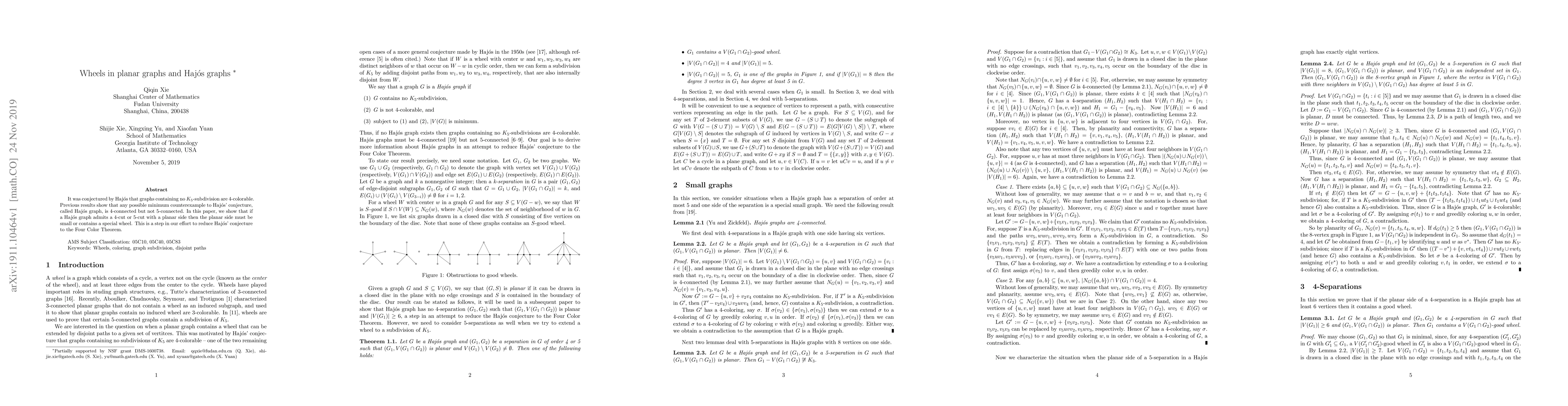 The paper introduces a method for characterizing 5-separations in Hajós graphs that are planar and without a 'good wheel', advancing the understanding of graph colorability and subdivision properties.
