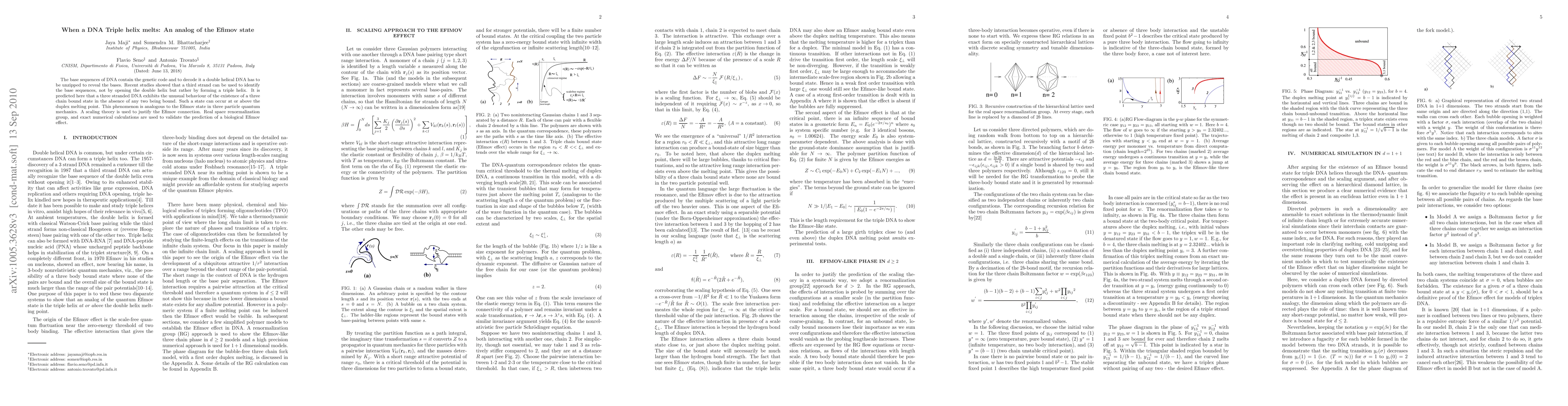 Researchers found that a DNA triple helix can exist without two strands being bound, similar to the Efimov state in quantum mechanics, and validated this phenomenon through numerical calculations.