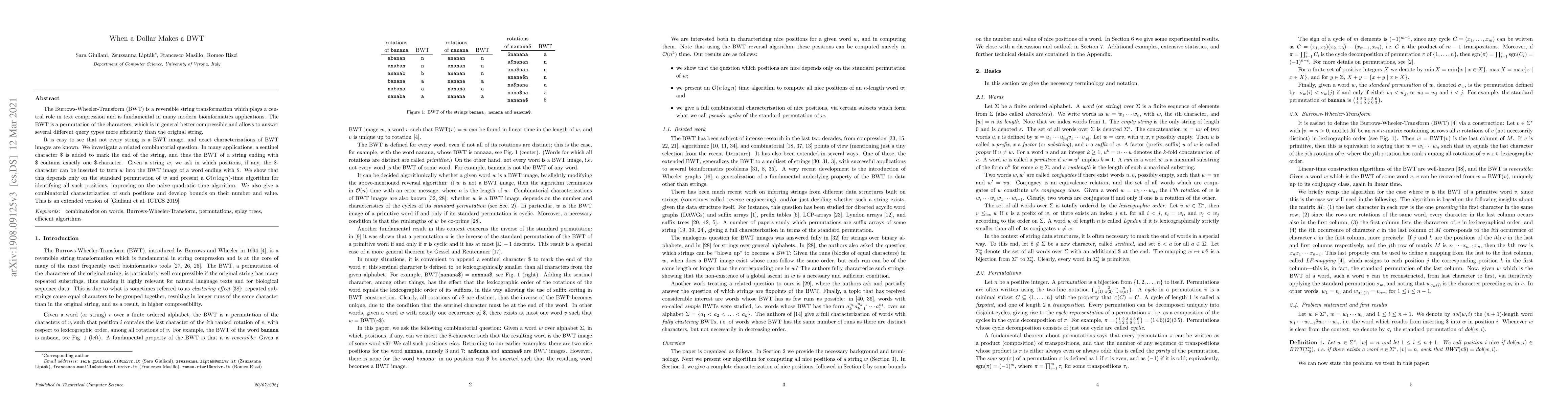 The Burrows-Wheeler-Transform (BWT) is a reversible string transformation which plays a central role in text compression and is fundamental in many modern bioinformatics applications. The BWT is a permutation of the characters, which is in general better compressible and allows to answer several different query types more efficiently than the original string. It is easy to see that not every string is a BWT image, and exact characterizations of BWT images are known. We investigate a related combinatorial question. In many applications, a sentinel character dollar is added to mark the end of the string, and thus the BWT of a string ending with dollar contains exactly one dollar-character. Given a string w, we ask in which positions, if any, the dollar-character can be inserted to turn w into the BWT image of a word ending with dollar. We show that this depends only on the standard permutation of w and present a O(n log n)-time algorithm for identifying all such positions, improving on the naive quadratic time algorithm. We also give a combinatorial characterization of such positions and develop bounds on their number and value. This is an extended version of [Giuliani et al. ICTCS 2019].