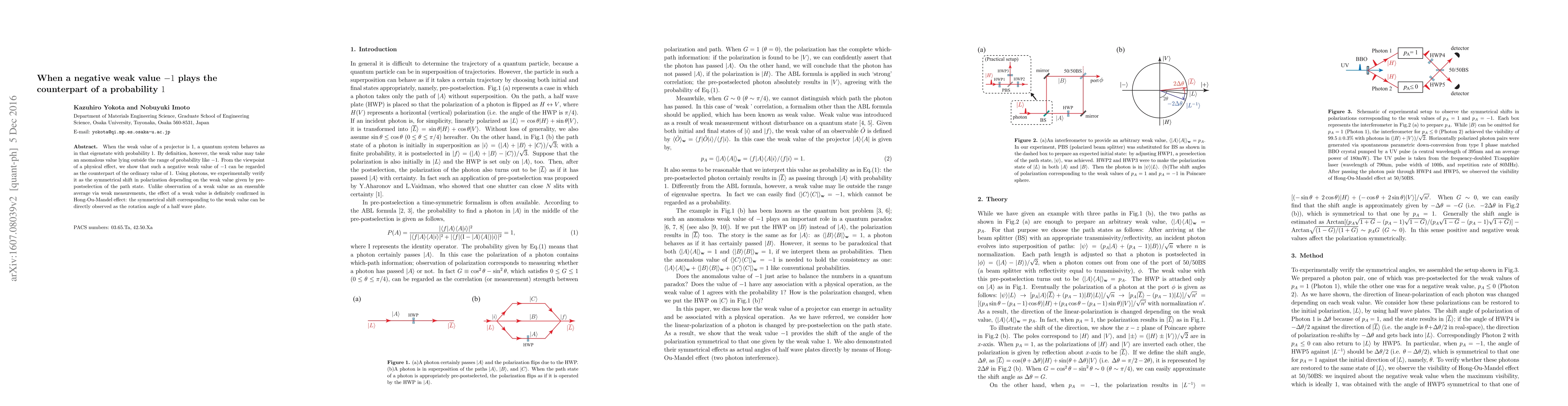When the weak value of a projector is 1, a quantum system behaves as in that eigenstate with probability 1. By definition, however, the weak value may take an anomalous value lying outside the range of probability like -1. From the viewpoint of a physical effect, we show that such a negative weak value of -1 can be regarded as the counterpart of the ordinary value of 1. Using photons, we experimentally verify it as the symmetrical shift in polarization depending on the weak value given by pre-postselection of the path state. Unlike observation of a weak value as an ensemble average via weak measurements, the effect of a weak value is definitely confirmed in two photon interference: the symmetrical shift corresponding to the weak value can be directly observed as the rotation angle of a half wave plate.