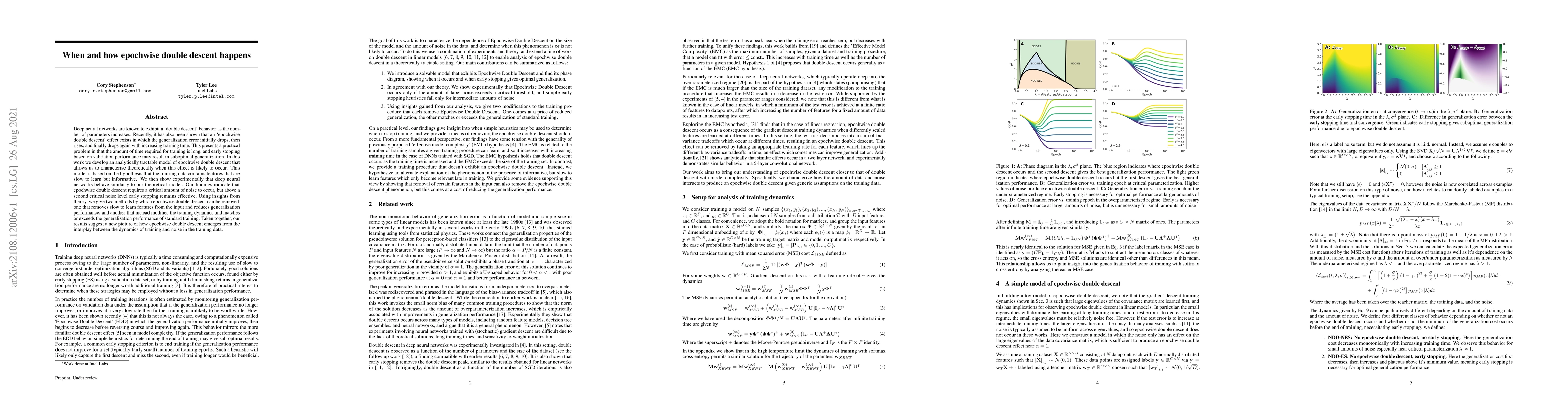 This paper investigates the phenomenon of epochwise double descent in deep neural networks, where generalization error initially decreases, then increases, and finally decreases again with more training epochs. It develops a theoretical model to explain when this effect occurs, showing that it requires a critical amount of noise in the training data and suggesting methods to mitigate it without significant loss in performance.