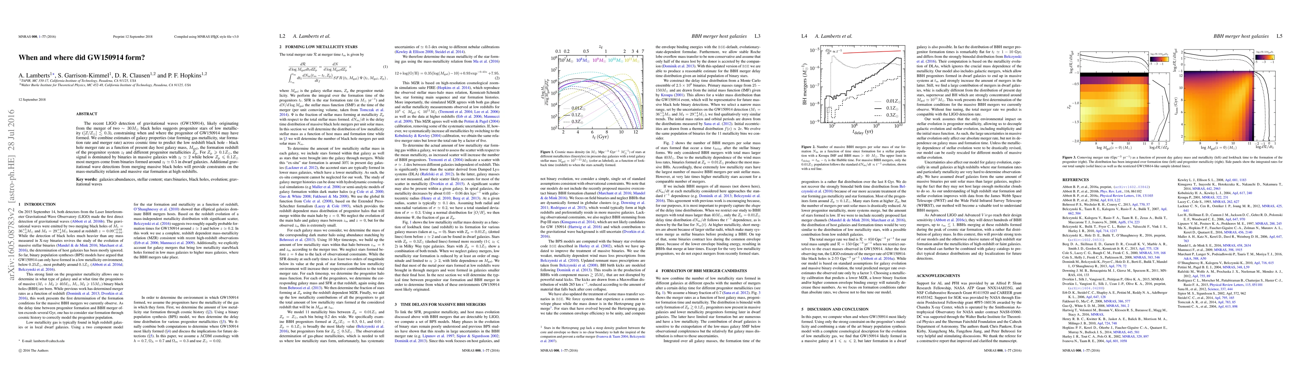 The LIGO detection of GW150914 likely originated from two $\sim 30 M_\odot$ black hole mergers, suggesting progenitor stars of low metallicity. The study predicts that the merger formed in massive galaxies at $z_\mathrm{form}\simeq 2$ for $Z_\mathrm{c}=0.1 Z_\odot$, with minor contributions from dwarf galaxies at $z_\mathrm{form}\simeq 0.5$.
