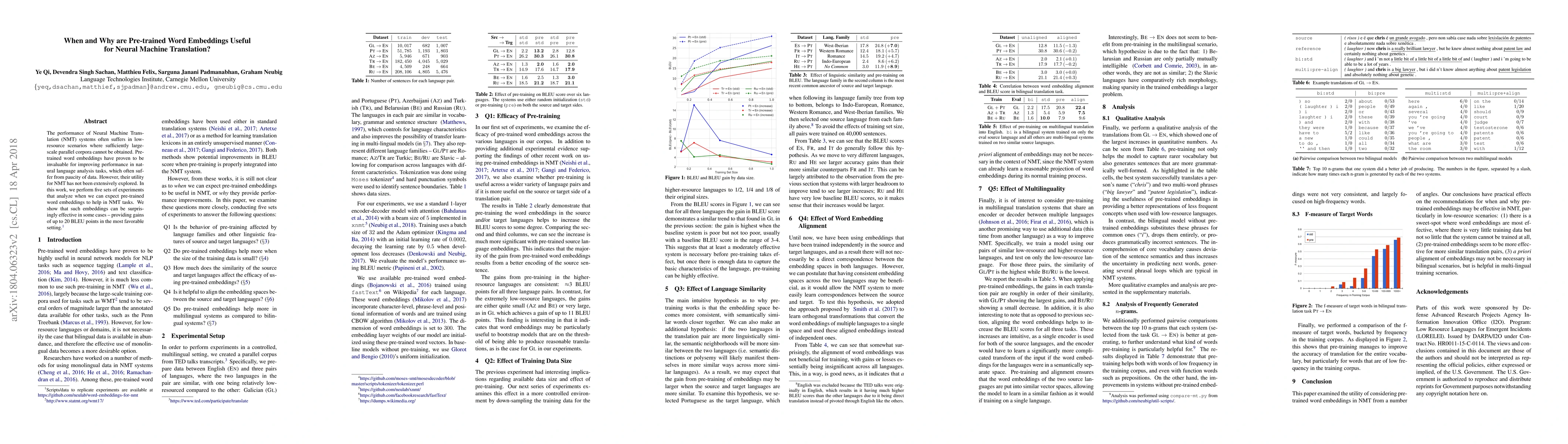This paper explores the effectiveness of pre-trained word embeddings in Neural Machine Translation (NMT), particularly in low-resource scenarios. The study finds that pre-trained embeddings can significantly improve NMT performance, achieving up to a 20 BLEU point increase in optimal conditions.