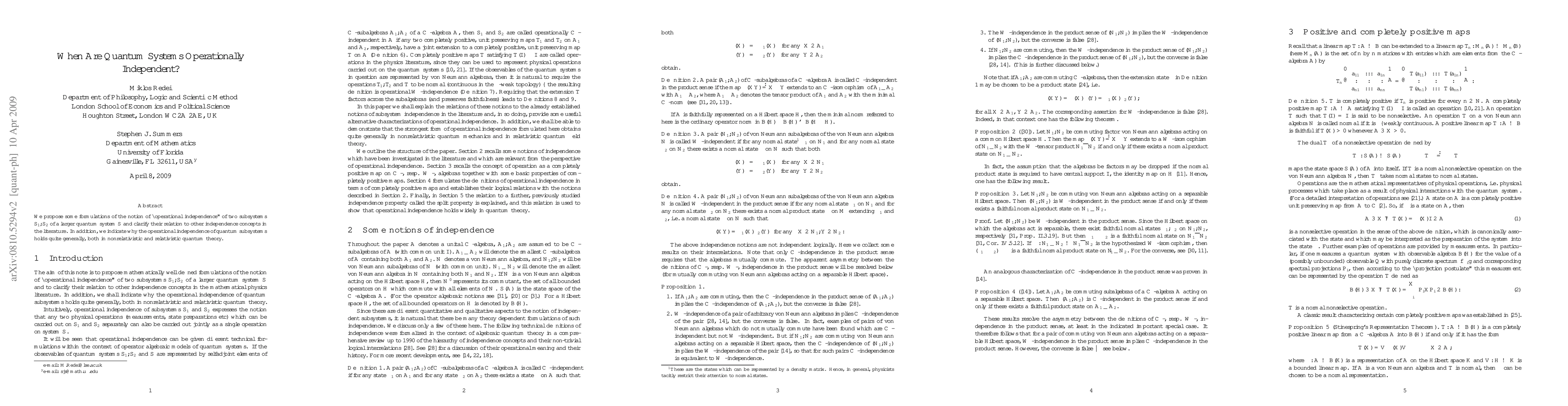 We propose some formulations of the notion of "operational independence" of two subsystems of a larger quantum system and clarify their relation to other independence concepts in the literature. In addition, we indicate why the operational independence of quantum subsystems holds quite generally, both in nonrelativistic and relativistic quantum theory.