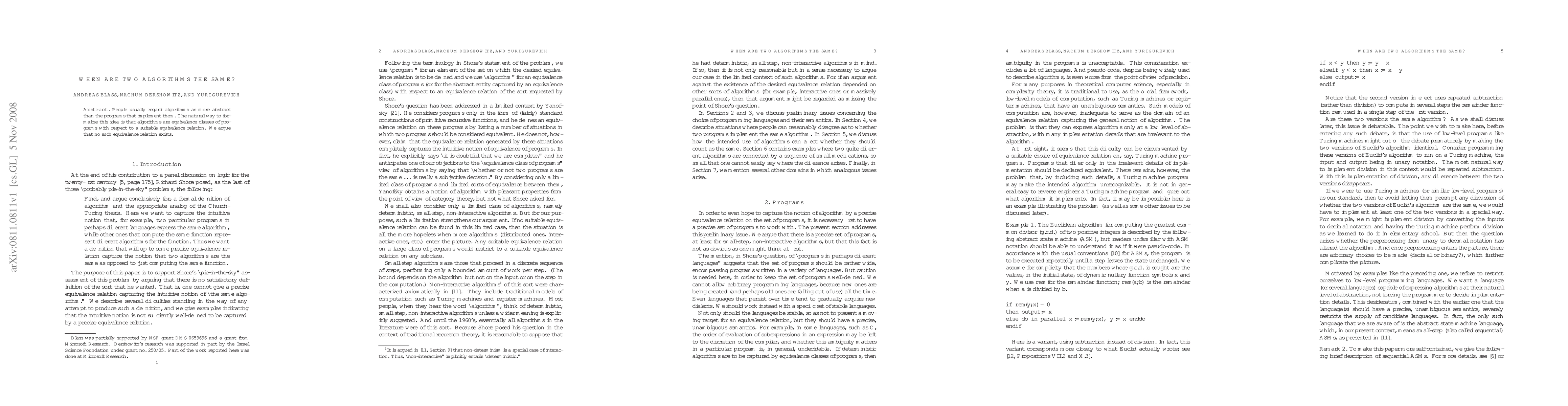 People usually regard algorithms as more abstract than the programs that implement them. The natural way to formalize this idea is that algorithms are equivalence classes of programs with respect to a suitable equivalence relation. We argue that no such equivalence relation exists.