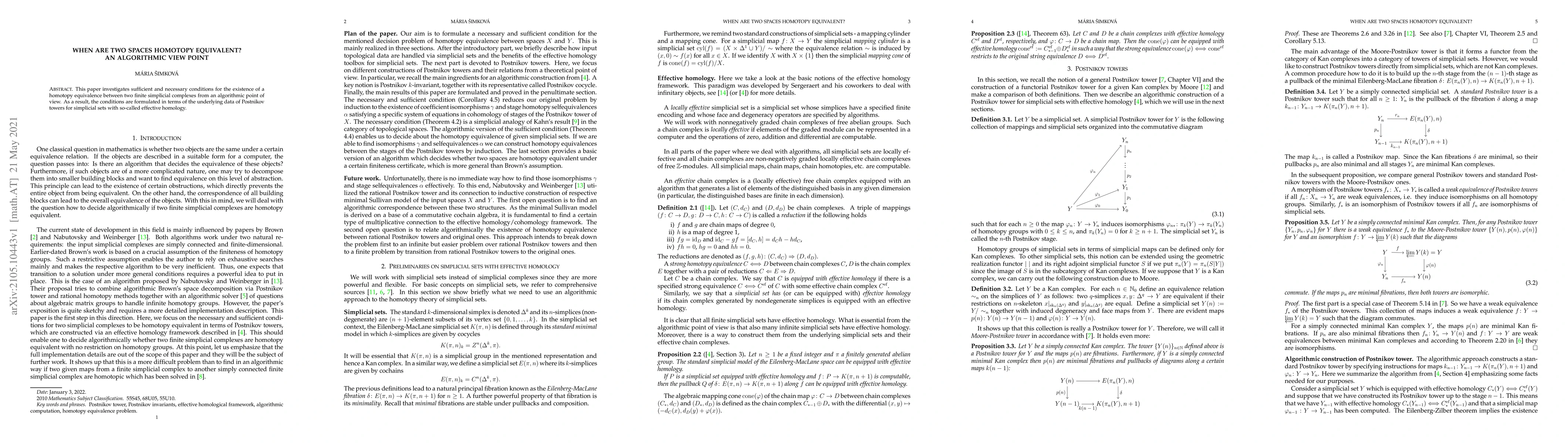This paper explores necessary and sufficient conditions for homotopy equivalence between two finite simplicial complexes, focusing on algorithmic approaches and formulating these conditions via Postnikov towers and effective homology data.