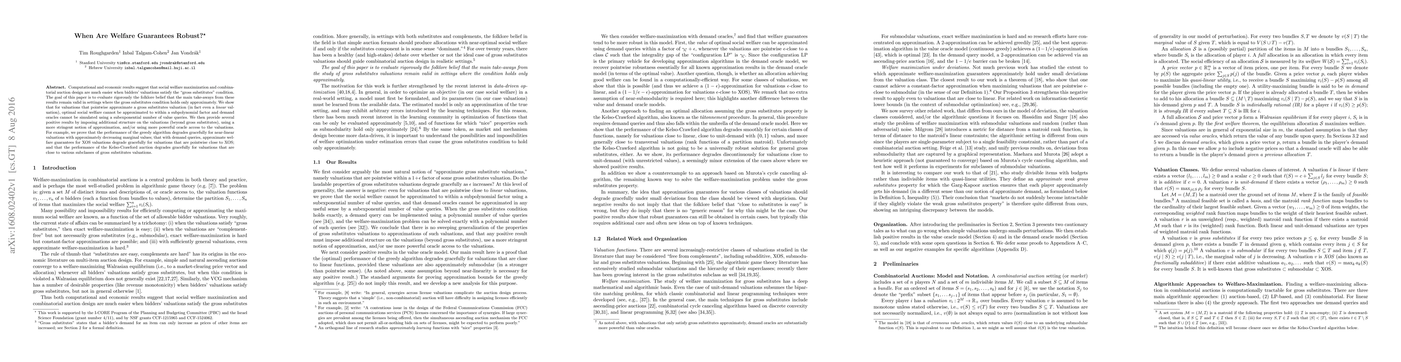 This paper investigates the robustness of welfare guarantees under approximate gross substitutes conditions, showing that optimal social welfare cannot be approximated well for near-gross substitutes valuations. It also provides positive results under additional valuation structures, stricter approximation notions, and enhanced oracle access.