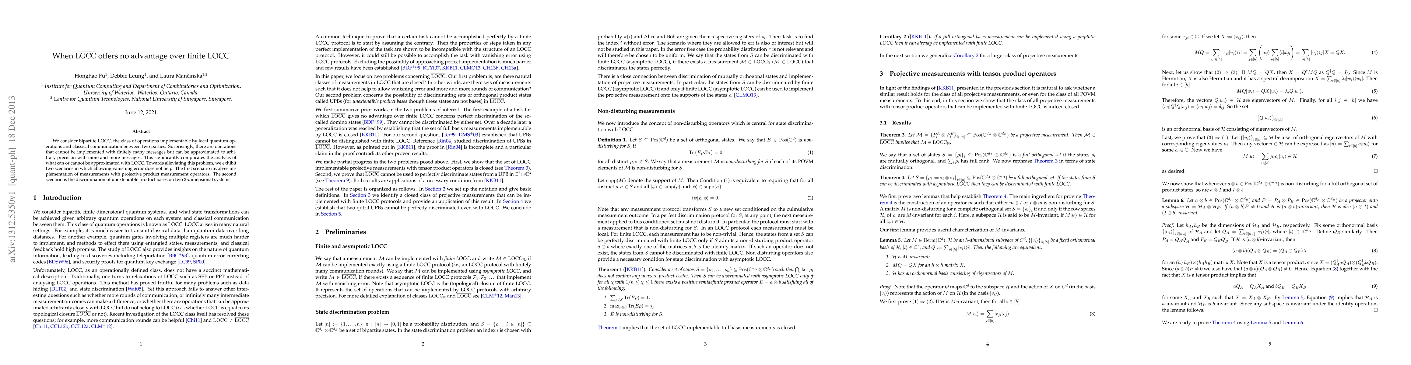 We consider bipartite LOCC, the class of operations implementable by local quantum operations and classical communication between two parties. Surprisingly, there are operations that cannot be implemented with finitely many messages but can be approximated to arbitrary precision with more and more messages. This significantly complicates the analysis of what can or cannot be approximated with LOCC. Towards alleviating this problem, we exhibit two scenarios in which allowing vanishing error does not help. The first scenario involves implementation of measurements with projective product measurement operators. The second scenario is the discrimination of unextendible product bases on two 3-dimensional systems.