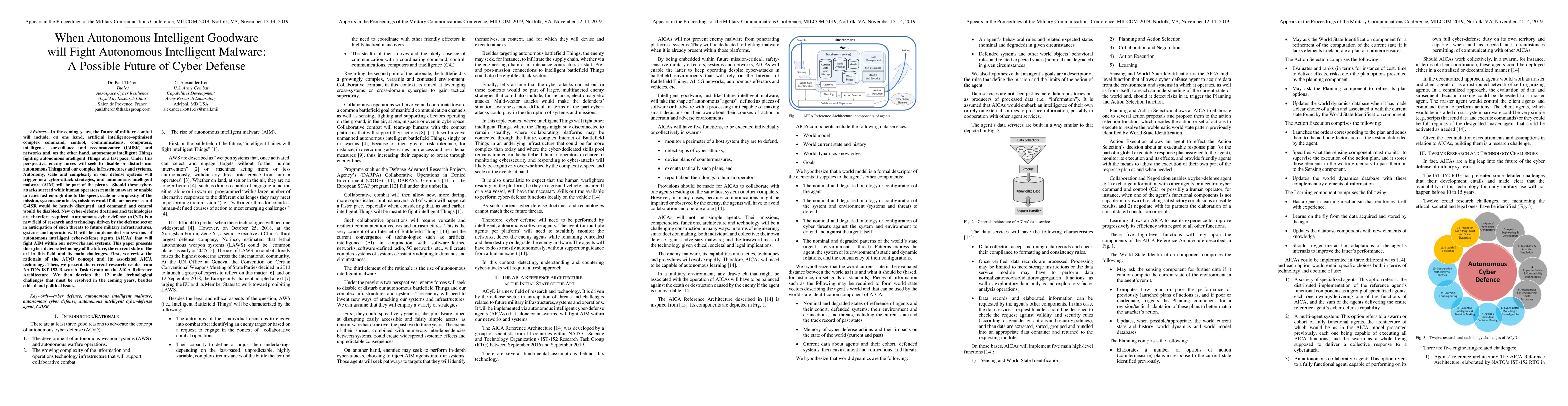 This paper explores the future of autonomous intelligent cyber defense (ACyD) against autonomous intelligent malware (AIM), emphasizing the need for new defense doctrines and technologies to counter escalating cyber threats. It discusses the concept of autonomous intelligent cyber-defense agents (AICAs) and reviews NATO's research on their architecture, highlighting 12 key technological challenges that must be addressed.