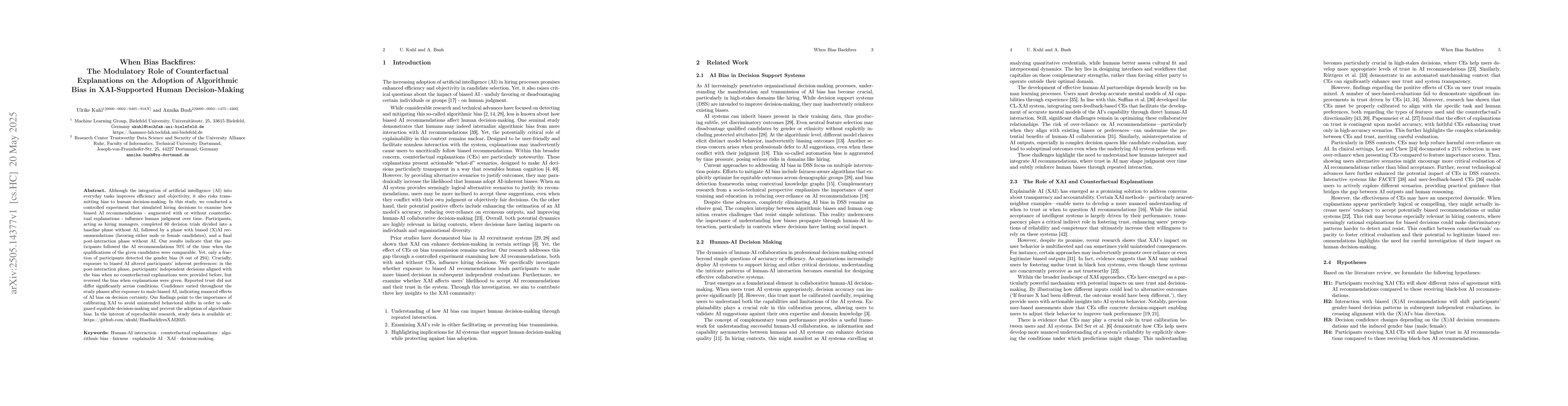 The study demonstrates the modulatory role of counterfactual explanations in mitigating the adoption of algorithmic bias in human decision-making.