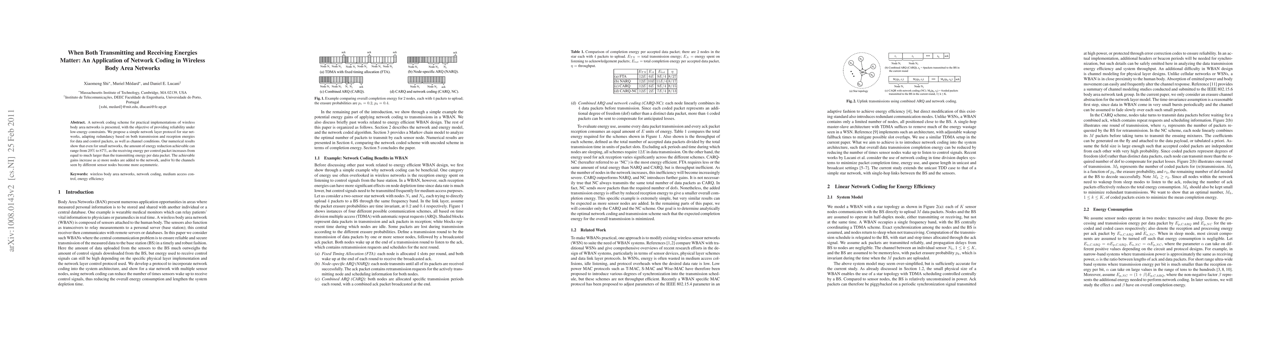 A network coding scheme reduces energy consumption in wireless body area networks by adapting redundancy based on transmission and reception energies, achieving gains of 29-87% energy reduction.