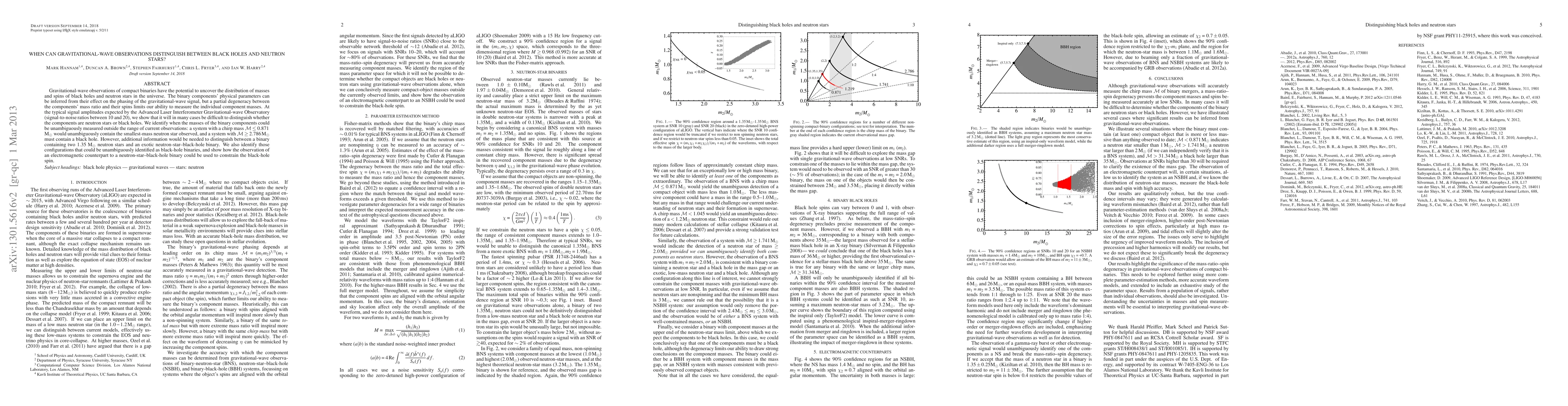 This paper investigates the ability of gravitational-wave observations to distinguish between black holes and neutron stars in compact binaries. It concludes that unambiguous mass measurements are possible only for systems with chirp masses below 0.871 M$_\odot$ or above 2.786 M$_\odot$, while additional data is needed to differentiate between certain neutron star and neutron-star-black-hole binaries.