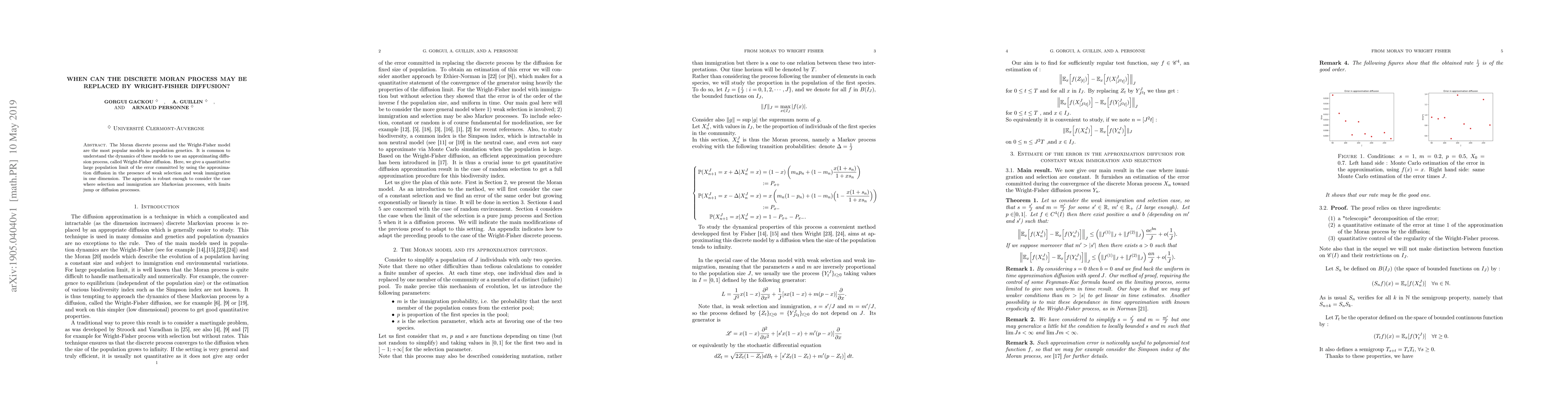 The Moran discrete process and the Wright-Fisher modelare the most popular models in population genetics. It is common tounderstand the dynamics of these models to use an approximating diffusionprocess, called Wright-Fisher diffusion. Here, we give a quantitativelarge population limit of the error committed by using the approximationdiffusion in the presence of weak selection and weak immigrationin one dimension. The approach is robust enough to consider the casewhere selection and immigration are Markovian processes, with limitsjump or diffusion processes.