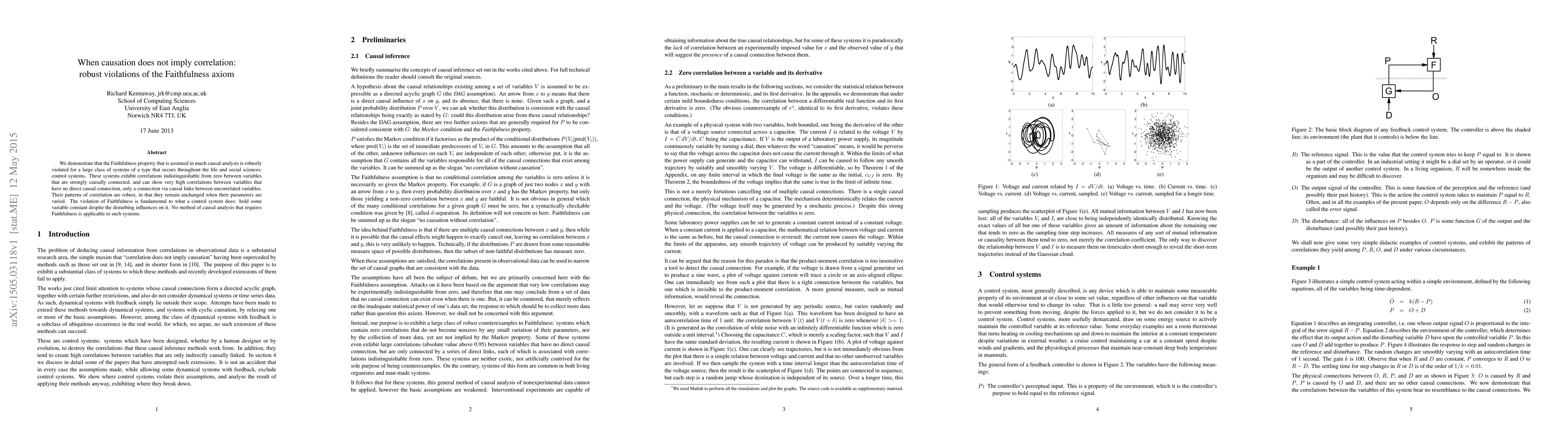 Control systems often violate the Faithfulness axiom in causal analysis, showing strong correlations between unrelated variables and robust patterns despite parameter changes.