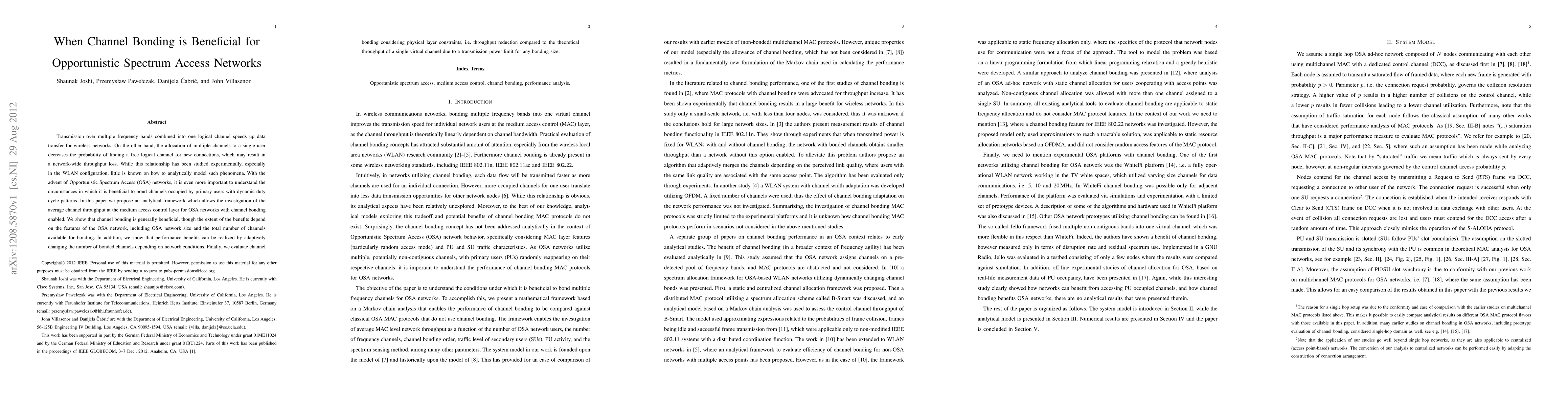 Transmission over multiple frequency bands combined into one logical channel speeds up data transfer for wireless networks. On the other hand, the allocation of multiple channels to a single user decreases the probability of finding a free logical channel for new connections, which may result in a network-wide throughput loss. While this relationship has been studied experimentally, especially in the WLAN configuration, little is known on how to analytically model such phenomena. With the advent of Opportunistic Spectrum Access (OSA) networks, it is even more important to understand the circumstances in which it is beneficial to bond channels occupied by primary users with dynamic duty cycle patterns. In this paper we propose an analytical framework which allows the investigation of the average channel throughput at the medium access control layer for OSA networks with channel bonding enabled. We show that channel bonding is generally beneficial, though the extent of the benefits depend on the features of the OSA network, including OSA network size and the total number of channels available for bonding. In addition, we show that performance benefits can be realized by adaptively changing the number of bonded channels depending on network conditions. Finally, we evaluate channel bonding considering physical layer constraints, i.e. throughput reduction compared to the theoretical throughput of a single virtual channel due to a transmission power limit for any bonding size.