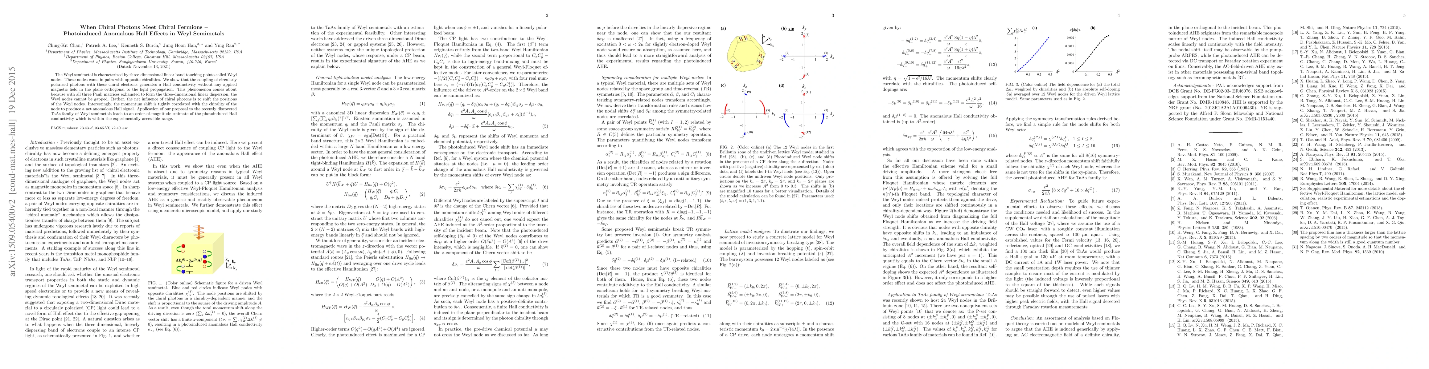 The Weyl semimetal is characterized by three-dimensional linear band touching points called Weyl nodes. These nodes come in pairs with opposite chiralities. We show that the coupling of circularly polarized photons with these chiral electrons generates a Hall conductivity without any applied magnetic field in the plane orthogonal to the light propagation. This phenomenon comes about because with all three Pauli matrices exhausted to form the three-dimensional linear dispersion, the Weyl nodes cannot be gapped. Rather, the net influence of chiral photons is to shift the positions of the Weyl nodes. Interestingly, the momentum shift is tightly correlated with the chirality of the node to produce a net anomalous Hall signal. Application of our proposal to the recently discovered TaAs family of Weyl semimetals leads to an order-of-magnitude estimate of the photoinduced Hall conductivity which is within the experimentally accessible range.
