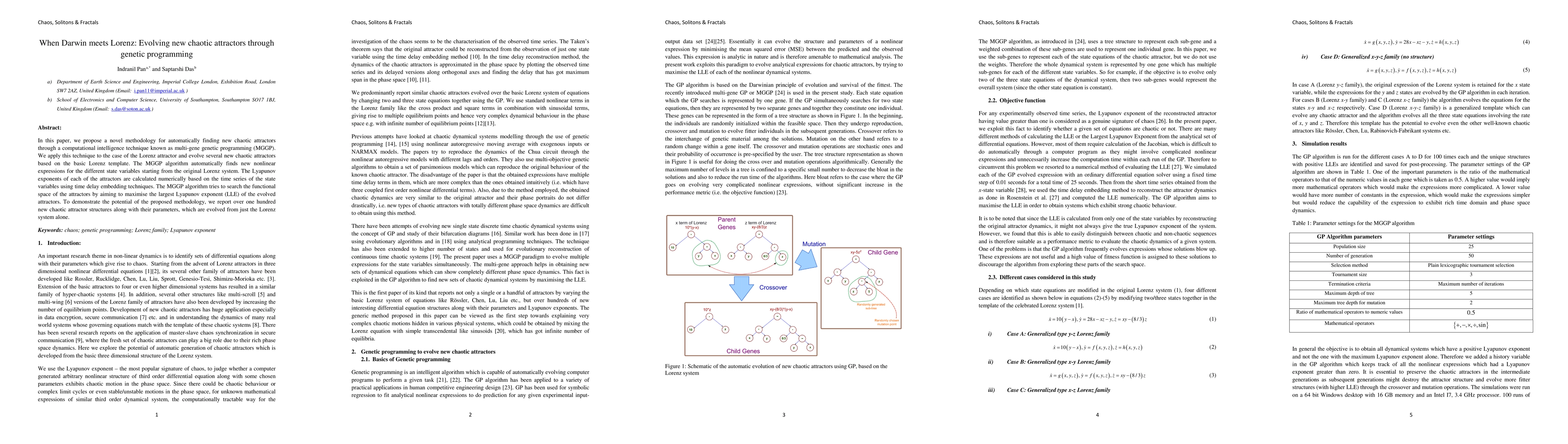 This paper presents a multi-gene genetic programming (MGGP) methodology to evolve new chaotic attractors from the Lorenz system, discovering over one hundred novel structures. The MGGP algorithm optimizes nonlinear expressions to maximize the largest Lyapunov exponent, confirming the method's effectiveness through numerical calculations of the attractors' Lyapunov exponents.