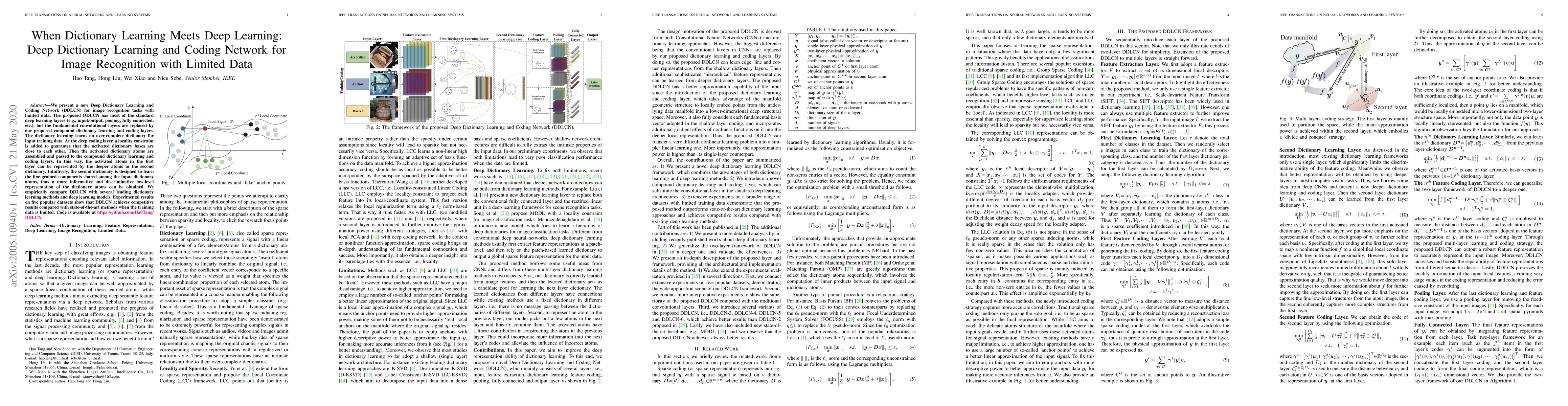 The paper introduces Deep Dictionary Learning and Coding Network (DDLCN) for image recognition with limited data, replacing convolutional layers with compound dictionary learning and coding layers to achieve competitive performance against state-of-the-art methods. Experimental results on five datasets demonstrate DDLCN's effectiveness under data scarcity.