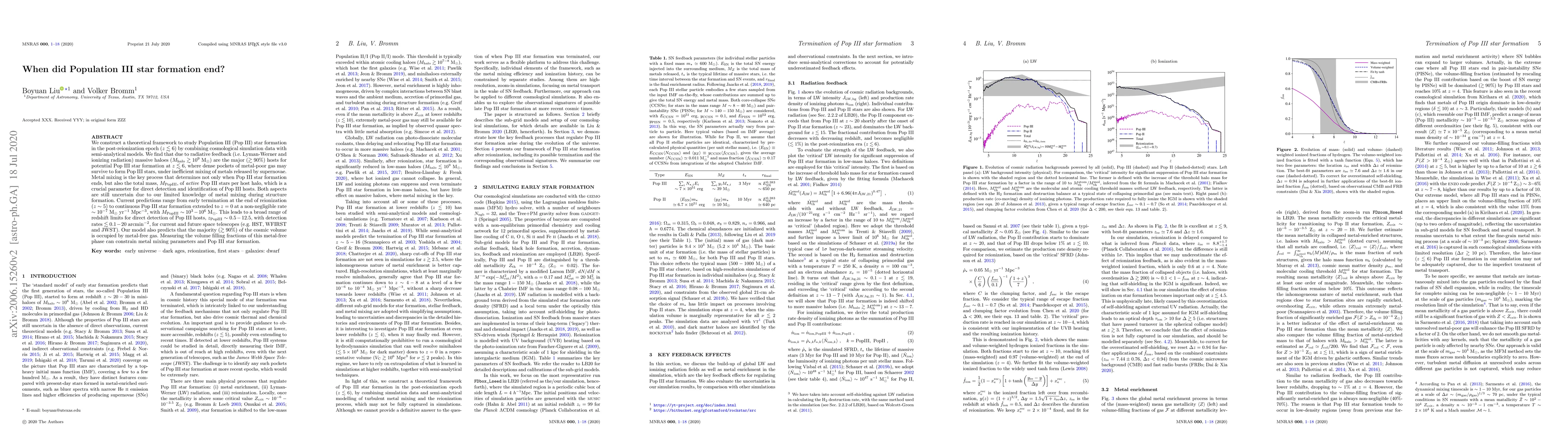 This paper develops a theoretical framework to explore the end of Population III star formation, finding that metal mixing in massive halos determines when this process ceases, with predictions ranging from early termination at $z\sim 5$ to ongoing formation at $z=0$. The study highlights the importance of metal mixing for detecting Pop III stars and suggests that most cosmic volume remains metal-free.