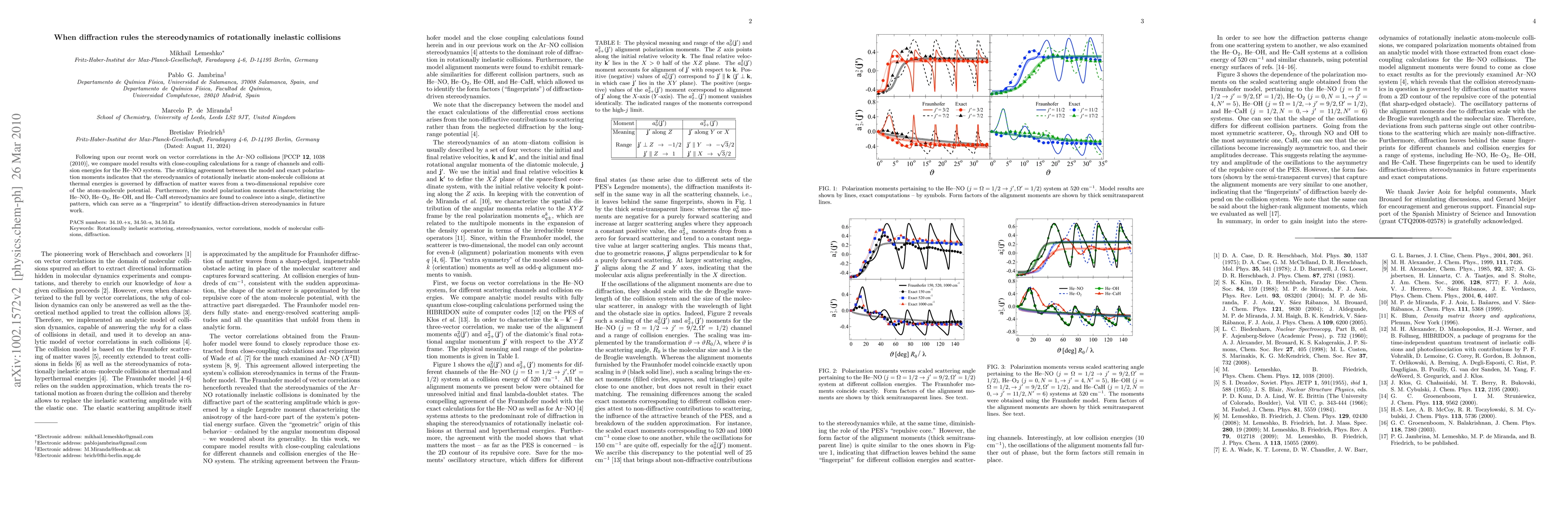 Following upon our recent work on vector correlations in the Ar-NO collisions [PCCP 12, 1038 (2010)], we compare model results with close-coupling calculations for a range of channels and collision energies for the He-NO system. The striking agreement between the model and exact polarization moments indicates that the stereodynamics of rotationally inelastic atom-molecule collisions at thermal energies is governed by diffraction of matter waves from a two-dimensional repulsive core of the atom-molecule potential. Furthermore, the model polarization moments characterizing the He-NO, He-O$_2$, He-OH, and He-CaH stereodynamics are found to coalesce into a single, distinctive pattern, which can serve as a "fingerprint" to identify diffraction-driven stereodynamics in future work.