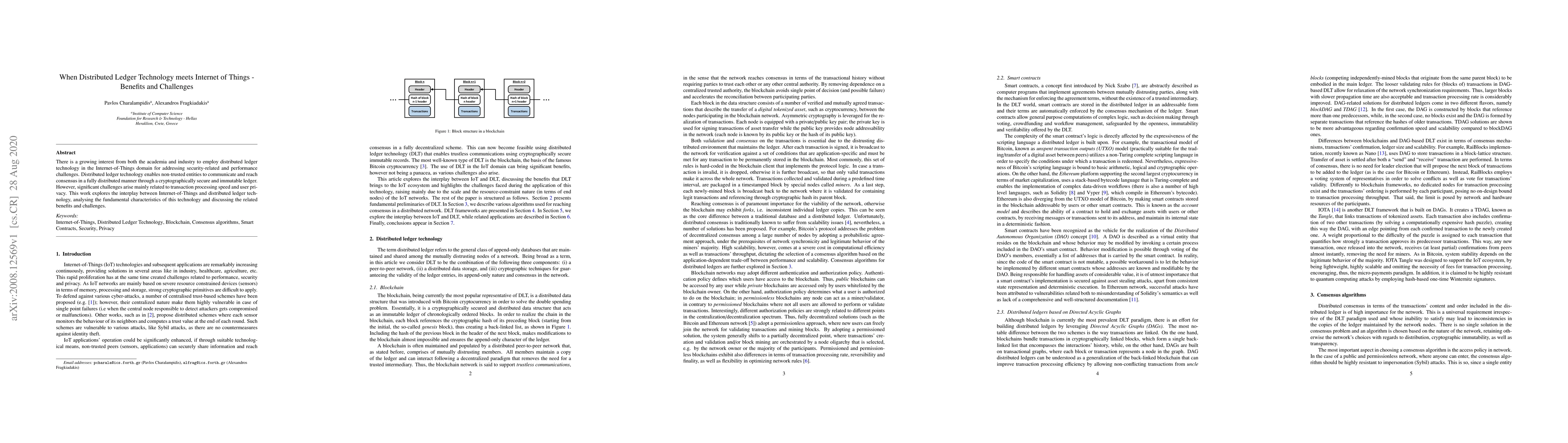 There is a growing interest from both the academia and industry to employ distributed ledger technology in the Internet-of-Things domain for addressing security-related and performance challenges. Distributed ledger technology enables non-trusted entities to communicate and reach consensus in a fully distributed manner through a cryptographically secure and immutable ledger. However, significant challenges arise mainly related to transaction processing speed and user privacy. This work explores the interplay between Internet-of-Things and distributed ledger technology, analysing the fundamental characteristics of this technology and discussing the related benefits and challenges.