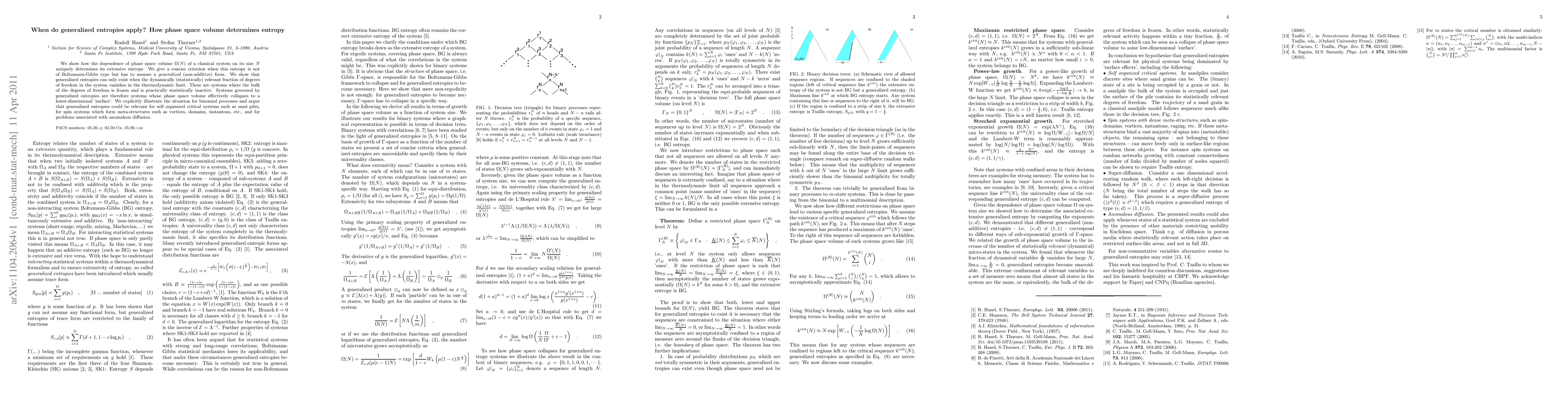 This paper discusses how the dependence of phase space volume on system size uniquely determines extensive entropy, identifying conditions for generalized entropies. It argues that generalized entropy forms arise when the relevant degrees of freedom vanish in the thermodynamic limit, as seen in systems with frozen, statistically inactive degrees of freedom.