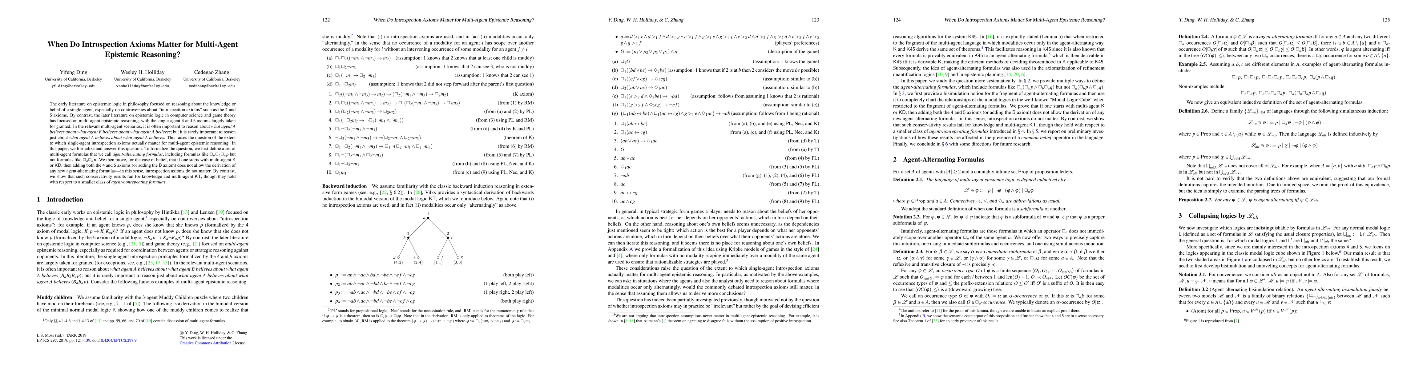 This paper investigates the relevance of single-agent introspection axioms in multi-agent epistemic reasoning, finding that these axioms do not affect the derivation of agent-alternating formulas in belief contexts but do not hold for knowledge or multi-agent KT scenarios.