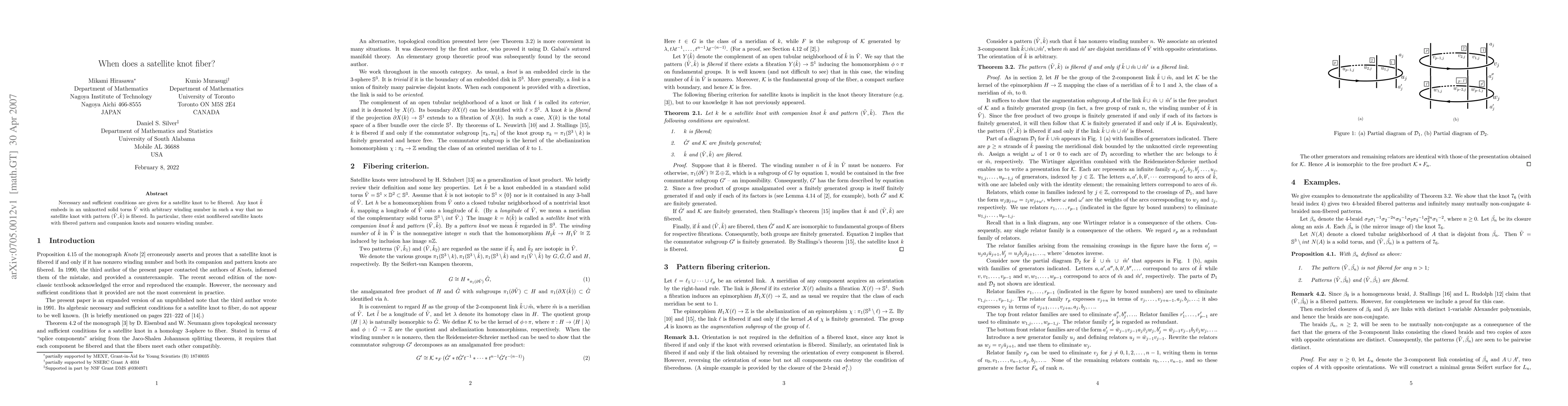 This paper establishes the necessary and sufficient conditions for a satellite knot to be fibered, demonstrating that no satellite knot with a specified pattern is fibered regardless of winding number, even when the pattern and companion knots are fibered.