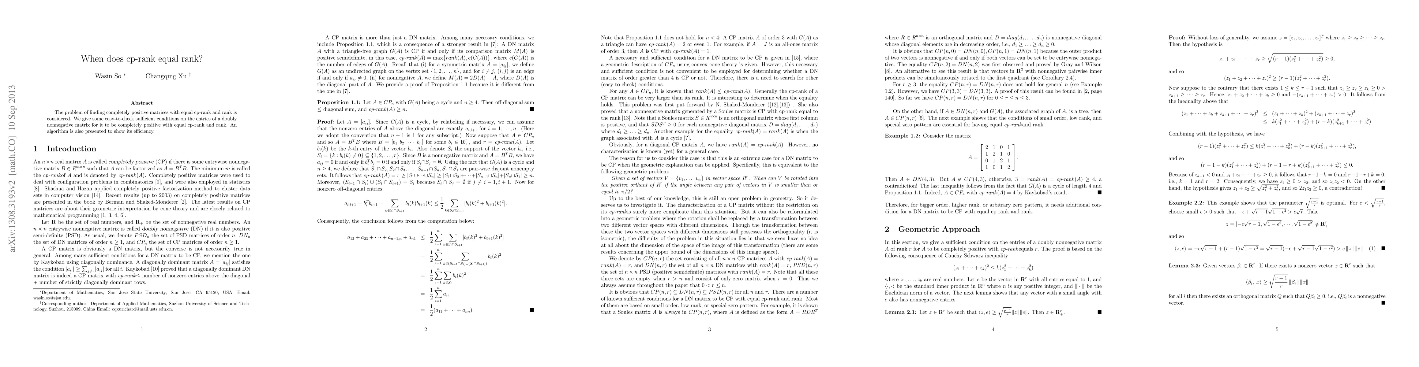 The problem of finding completely positive matrices with equal cp-rank and rank is considered. We give some easy-to-check sufficient conditions on the entries of a doubly nonnegative matrix for it to be completely positive with equal cp-rank and rank. An algorithm is also presented to show its efficiency.