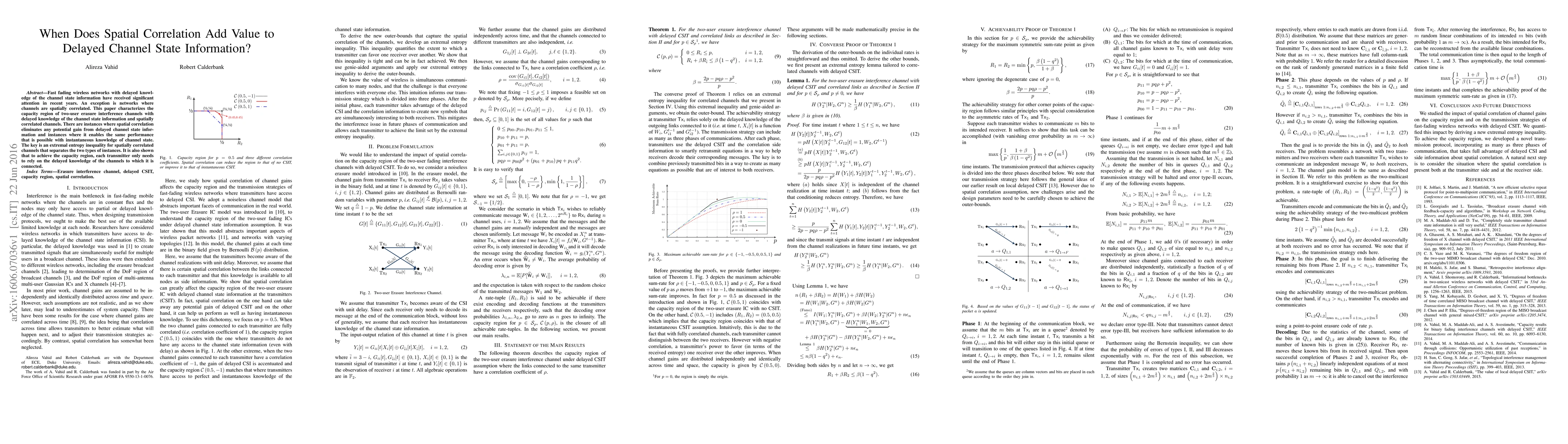 This research identifies conditions under which spatial correlation in wireless networks with delayed channel state information can either nullify or enhance performance. It establishes an extremal entropy inequality to differentiate these scenarios, showing that each transmitter only needs delayed channel knowledge of its connected channels to achieve the capacity region.