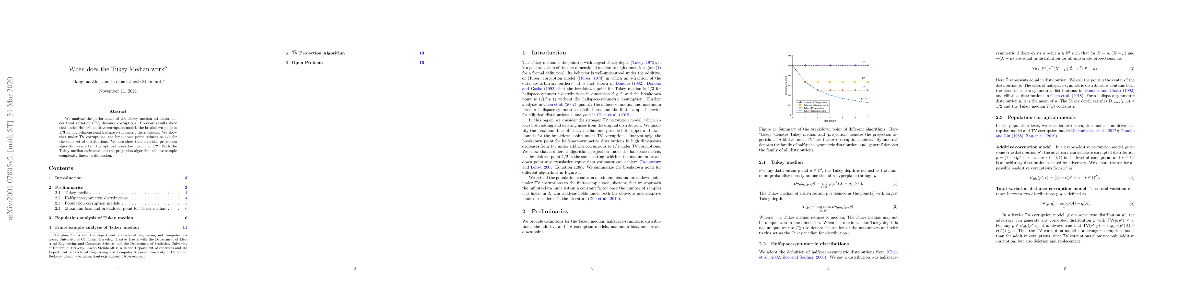 The Tukey median estimator shows a reduced breakdown point of 1/4 under total variation distance corruptions compared to 1/3 under Huber's additive corruption model for high-dimensional halfspace-symmetric distributions.