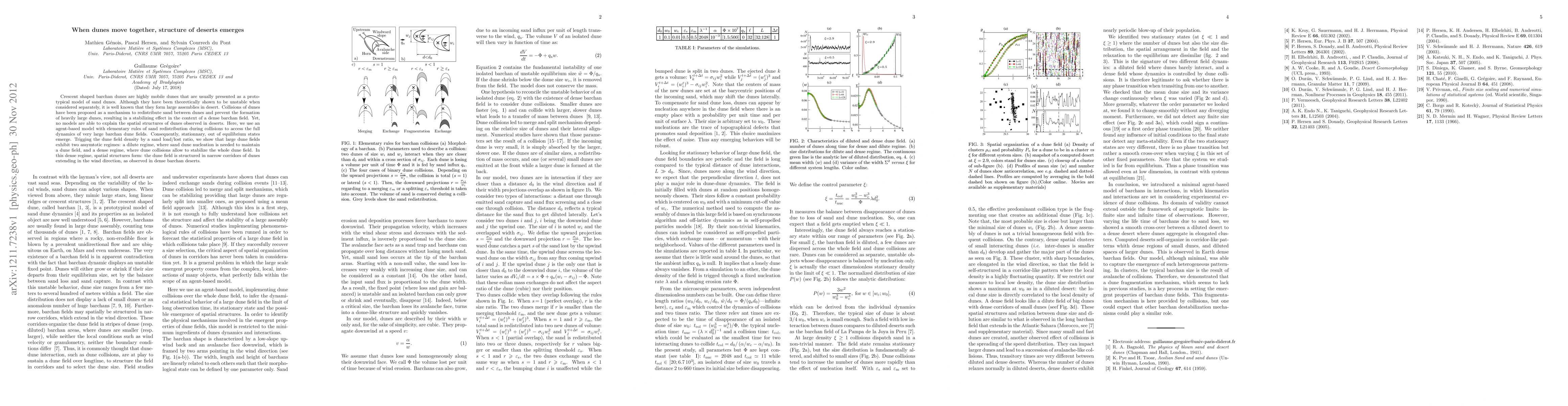 Crescent shaped barchan dunes are highly mobile dunes that are usually presented as a prototypical model of sand dunes. Although they have been theoretically shown to be unstable when considered separately, it is well known that they form large assemblies in desert. Collisions of dunes have been proposed as a mechanism to redistribute sand between dunes and prevent the formation of heavily large dunes, resulting in a stabilizing effect in the context of a dense barchan field. Yet, no models are able to explain the spatial structures of dunes observed in deserts. Here, we use an agent-based model with elementary rules of sand redistribution during collisions to access the full dynamics of very large barchan dune fields. Consequently, stationnary, out of equilibrium states emerge. Trigging the dune field density by a sand load/lost ratio, we show that large dune fields exhibit two assymtotic regimes: a dilute regime, where sand dune nucleation is needed to maintain a dune field, and a dense regime, where dune collisions allow to stabilize the whole dune field. In this dense regime, spatial structures form: the dune field is structured in narrow corridors of dunes extending in the wind direction, as observed in dense barchan deserts.