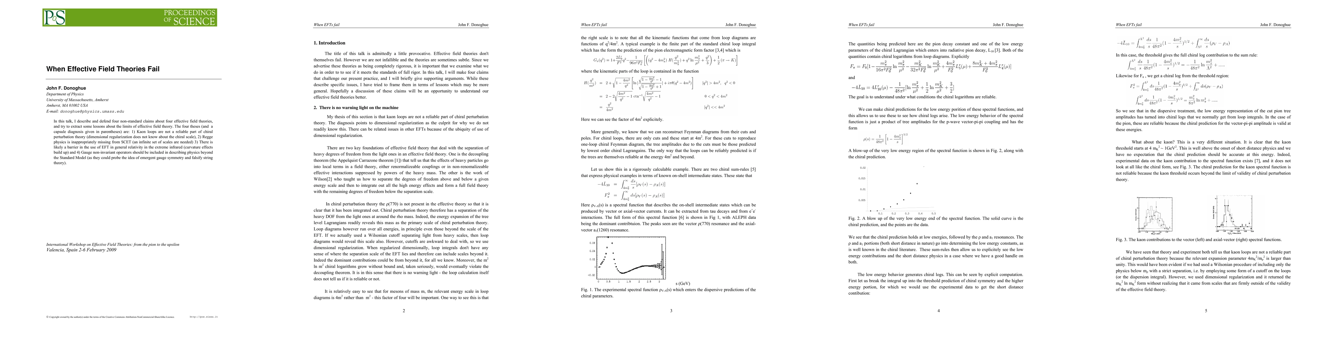 Researchers identified four limitations of effective field theories, including the failure of chiral perturbation theory with kaon loops and the need for infinite scales in SCET; they also argue that EFTs may not be suitable for describing physics in extreme infrared regimes.