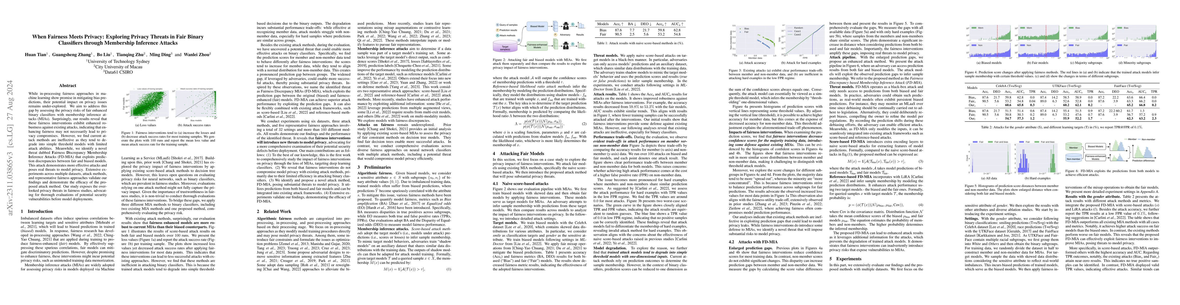 This paper investigates the privacy threats in fairness-enhanced binary classifiers, finding that traditional membership inference attacks are ineffective against them. The authors propose a new attack method, FD-MIA, which exploits prediction discrepancies between original and fairness-enhanced models, and discuss strategies to mitigate privacy risks.