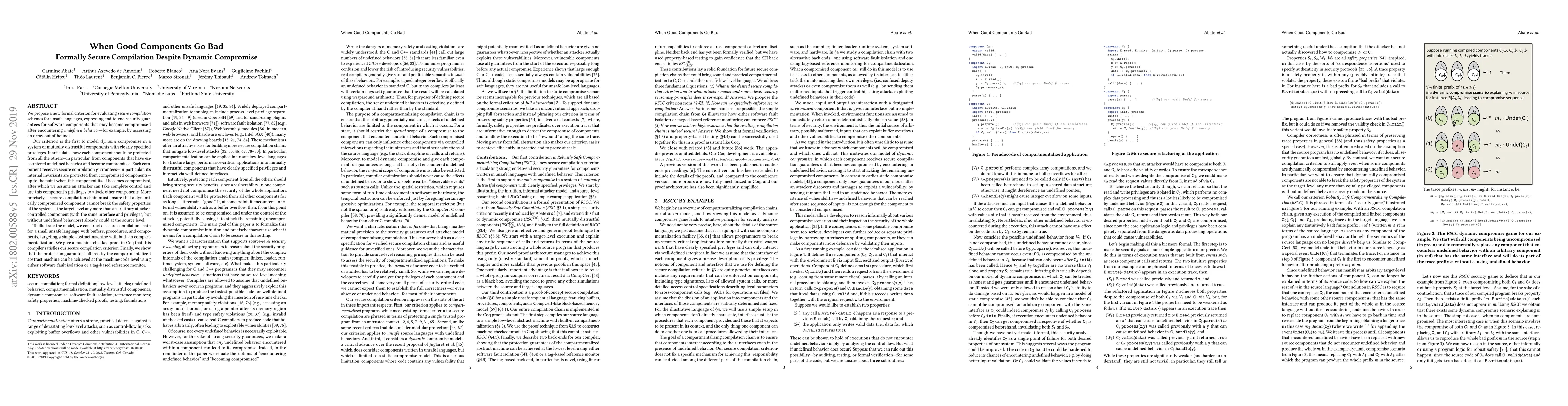 This paper introduces a formal criterion for secure compilation in unsafe languages, focusing on end-to-end security despite dynamic component compromise after undefined behaviors. It models mutual distrust and specifies privileges, ensuring that compromised components cannot breach system safety more than attacker-controlled components could at the source level.