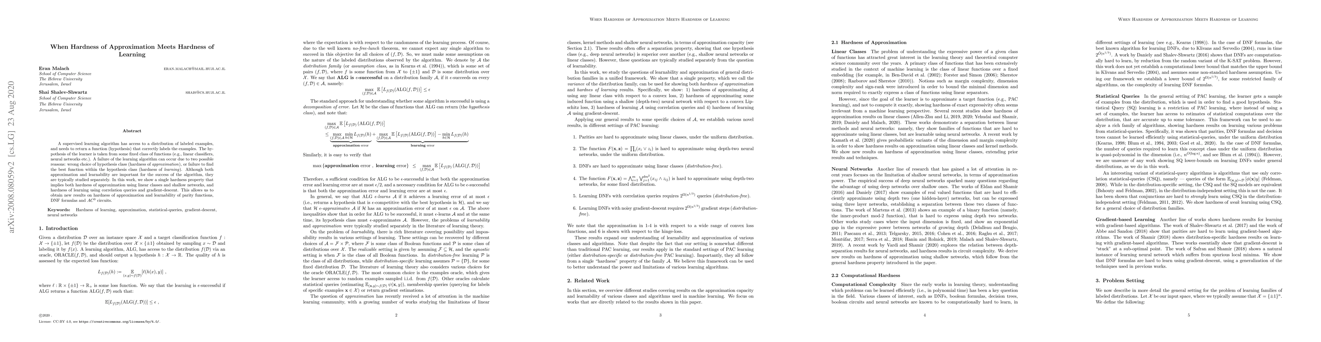 This paper explores the interplay between hardness of approximation and hardness of learning in supervised learning algorithms. It introduces a unified hardness property that simultaneously implies both difficulties in choosing appropriate hypothesis classes and challenges in finding optimal functions within those classes, leading to new insights on the learnability of complex functions like parity functions, DNF formulas, and $AC^0$ circuits.