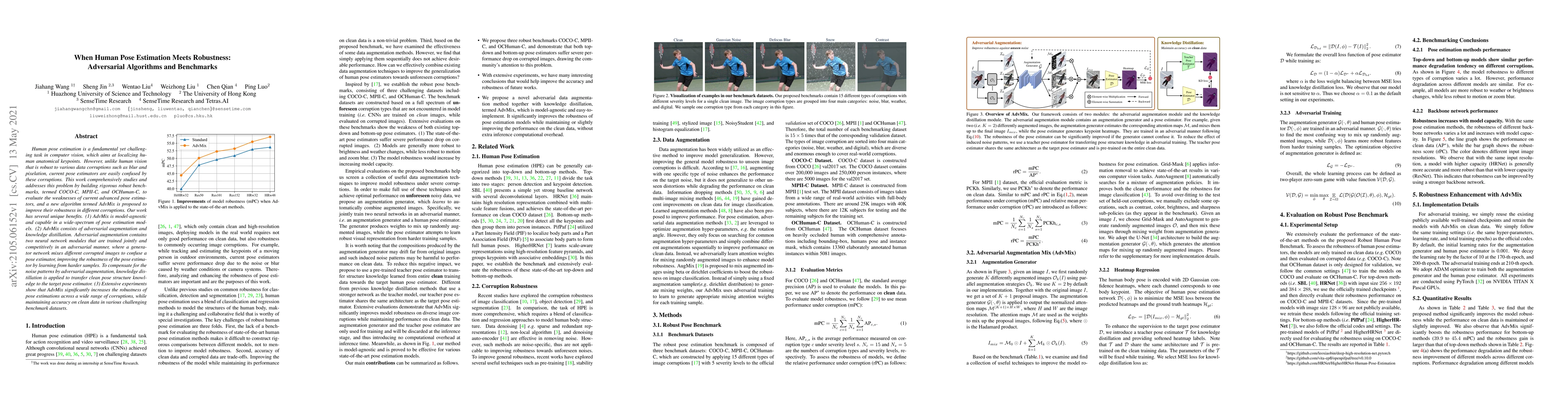 Human pose estimation is a fundamental yet challenging task in computer vision, which aims at localizing human anatomical keypoints. However, unlike human vision that is robust to various data corruptions such as blur and pixelation, current pose estimators are easily confused by these corruptions. This work comprehensively studies and addresses this problem by building rigorous robust benchmarks, termed COCO-C, MPII-C, and OCHuman-C, to evaluate the weaknesses of current advanced pose estimators, and a new algorithm termed AdvMix is proposed to improve their robustness in different corruptions. Our work has several unique benefits. (1) AdvMix is model-agnostic and capable in a wide-spectrum of pose estimation models. (2) AdvMix consists of adversarial augmentation and knowledge distillation. Adversarial augmentation contains two neural network modules that are trained jointly and competitively in an adversarial manner, where a generator network mixes different corrupted images to confuse a pose estimator, improving the robustness of the pose estimator by learning from harder samples. To compensate for the noise patterns by adversarial augmentation, knowledge distillation is applied to transfer clean pose structure knowledge to the target pose estimator. (3) Extensive experiments show that AdvMix significantly increases the robustness of pose estimations across a wide range of corruptions, while maintaining accuracy on clean data in various challenging benchmark datasets.