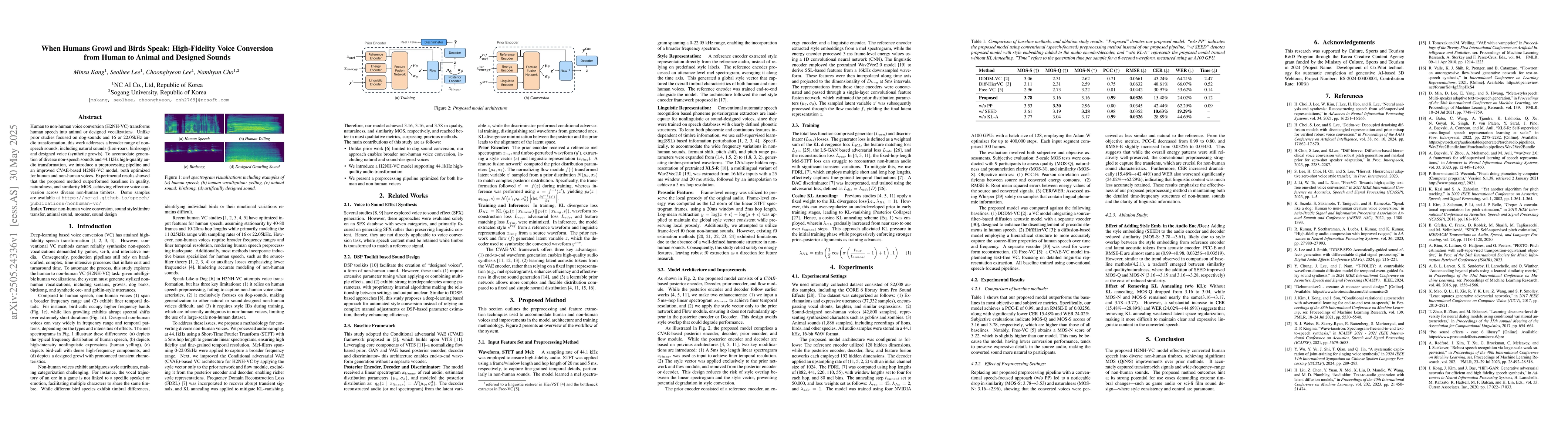 The research introduces a preprocessing pipeline and an improved CVAE-based H2NH-VC model for high-fidelity voice conversion from human to a broad range of non-speech sounds, including natural animal sounds and synthetic voices, optimized for both human and non-human timbres.