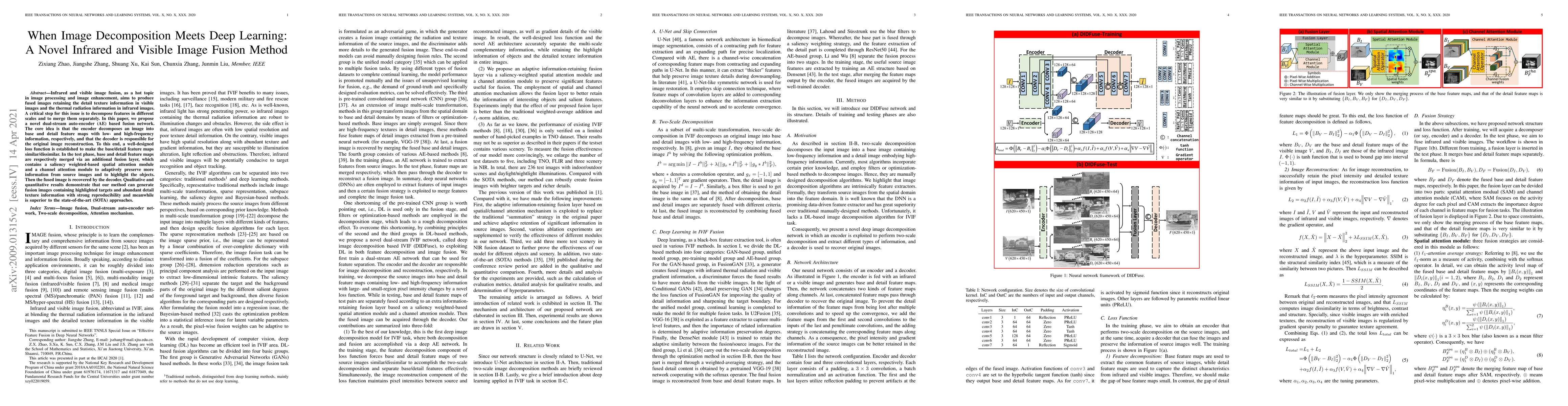 This paper introduces a novel dual-stream auto-encoder fusion network for combining infrared and visible images, achieving enhanced detail and thermal information. The method employs a loss function to decompose and reconstruct images, utilizing attention modules for adaptive information preservation and target highlighting, outperforming existing state-of-the-art techniques.