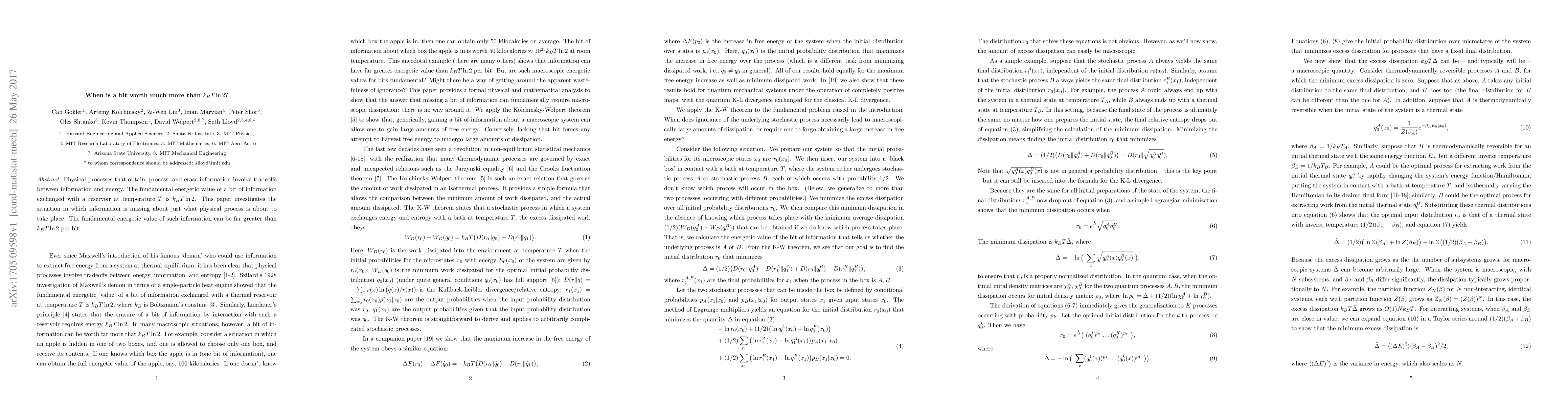 A new research paper explores when a single bit of information can hold more value than the fundamental energetic limit (kT ln2) for exchanging it with a reservoir at temperature T. The study reveals that in situations where uncertainty about physical processes is involved, the true value of information can be significantly greater.
